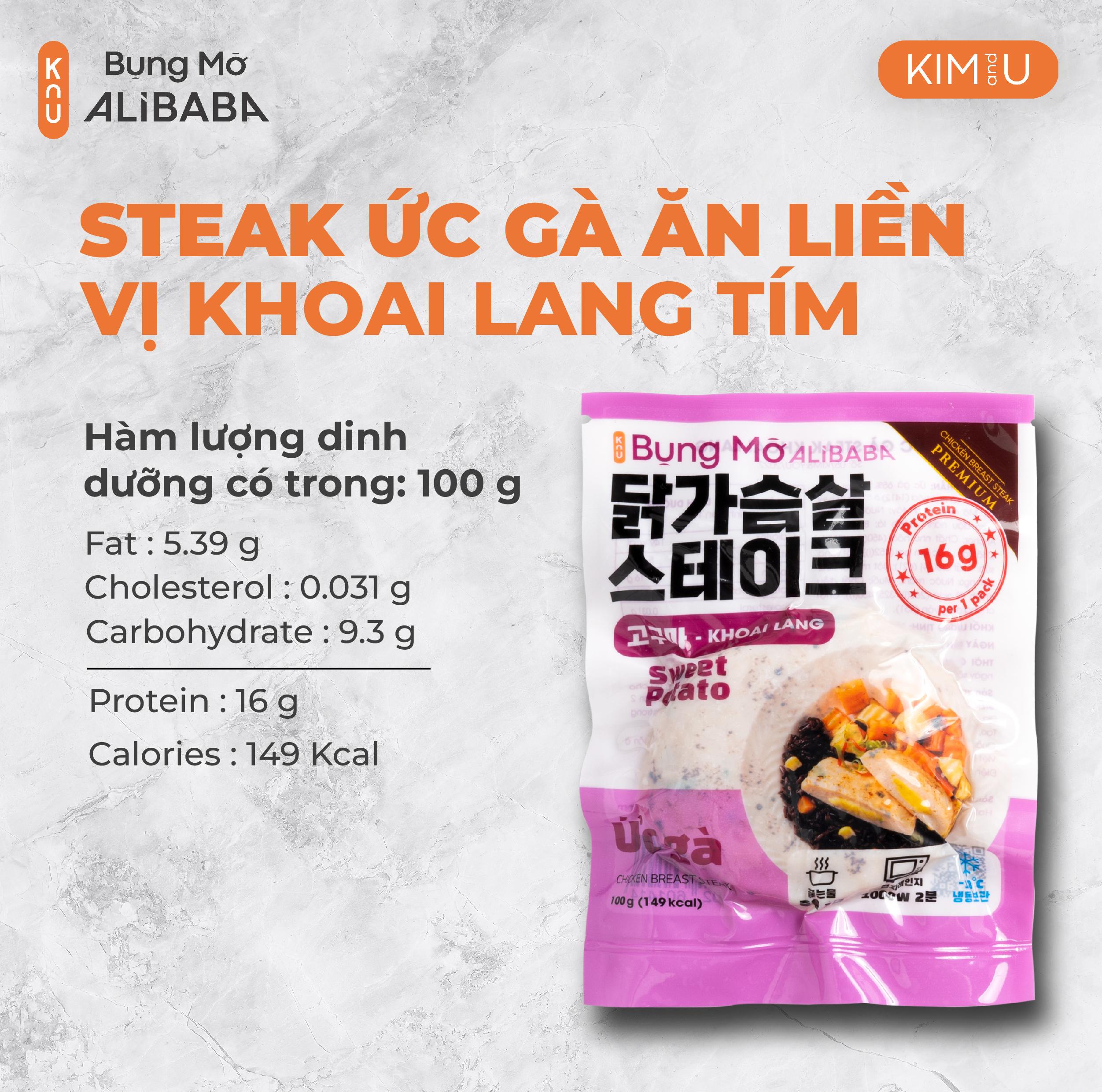 Thịt gà vị ngọt dịu ăn kèm cùng khoai lang tím nghiền thơm siêu mềm siêu ngon, mượt mà và mịn tan trong miệng. Ức Gà Steak Khoai Lang là món ăn vừa lạ vừa quen cho một bữa tối nhẹ nhàng sau một ngày bận rộn.