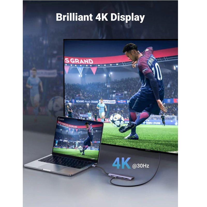 - Sản phẩm chính hãng Ugreen - Bộ chuyển đổi 6 trong 1 tiện dụng - Chuyển đổi tín hiệu USB-C sang HDMI - 3 cổng USB-A 3.0 - Hỗ trợ xuất hình ảnh độ