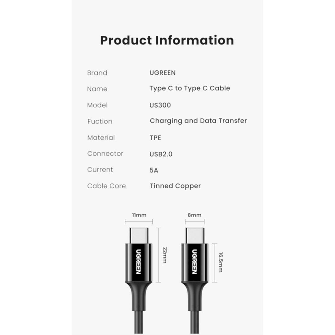 Ugreen 50997 1M Usb Type C Male To Usb Type C 2.0 3A Data Cable Đen Us286 1. Features: Charging cable, data transmission. 2. Cable length: 1M 3. Color: Black 2. Input: USB-C Male 3.