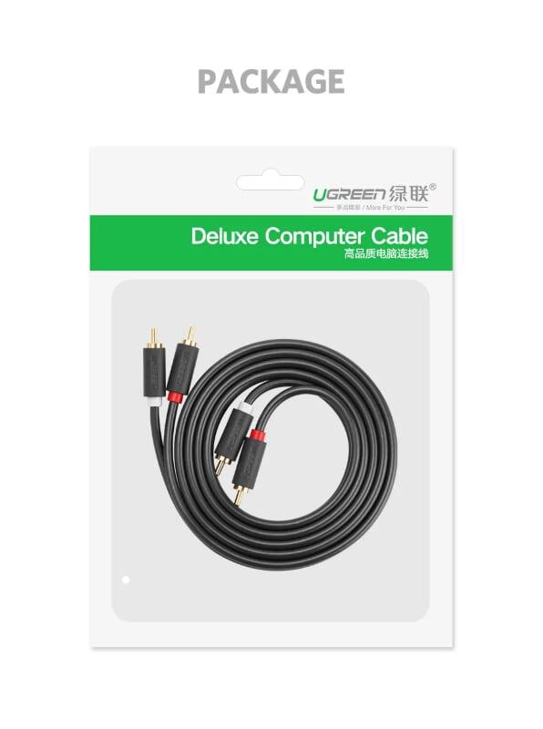 Ugreen 10510 3.5Mm Male To 2Rca Male Cable 2M AV116 1. Features: Connect the phone to the amplifier and sound system via RCA (Red White) 2. Length: 2M 3. Color: Black 4. Input: 3.5mm audio