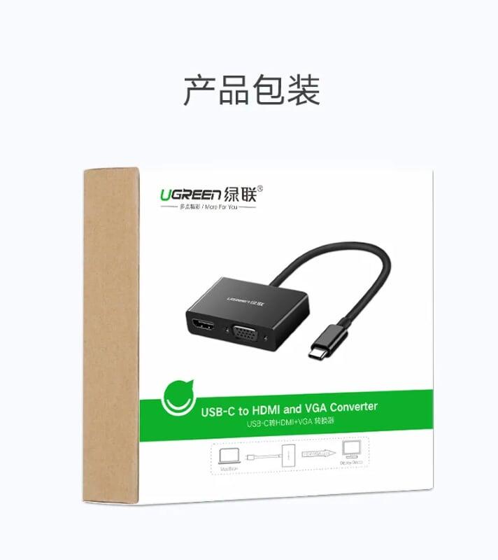 Ugreen 50251 15CM 4k usb type c bộ chuyển đổi sang hdmi vga black mm123 1. Feature: USB Type C to VGA HDMI 2. Cable length: 18Cm 3. Color: Black 4. Input: USB Type-C 5.