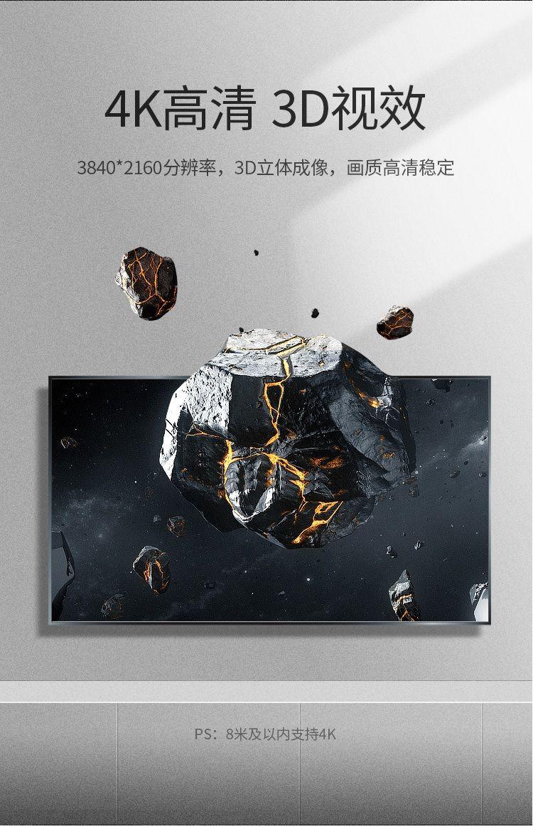 1. Mini HDMI to HDMI2.1 adapter cable 2. Resolution: 7680*4320@60Hz, 3840*2160@120Hz/240Hz, 2560*1440@144Hz/165Hz/240Hz, 1920*1080@240Hz 3. Shielding: aluminum foil + ground wire + metal braided mesh 4. Wire core material: tinned copper 5. Interface material: nickel plated
