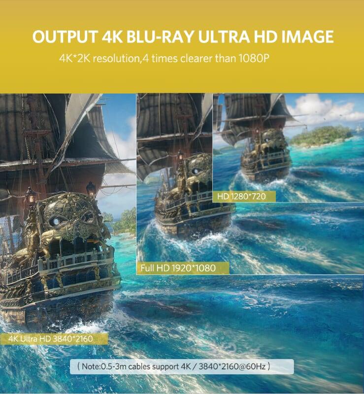 - Support HDMI 2.0 ports (4K @ 60Hz, 18 Gbps, 28 AWG)