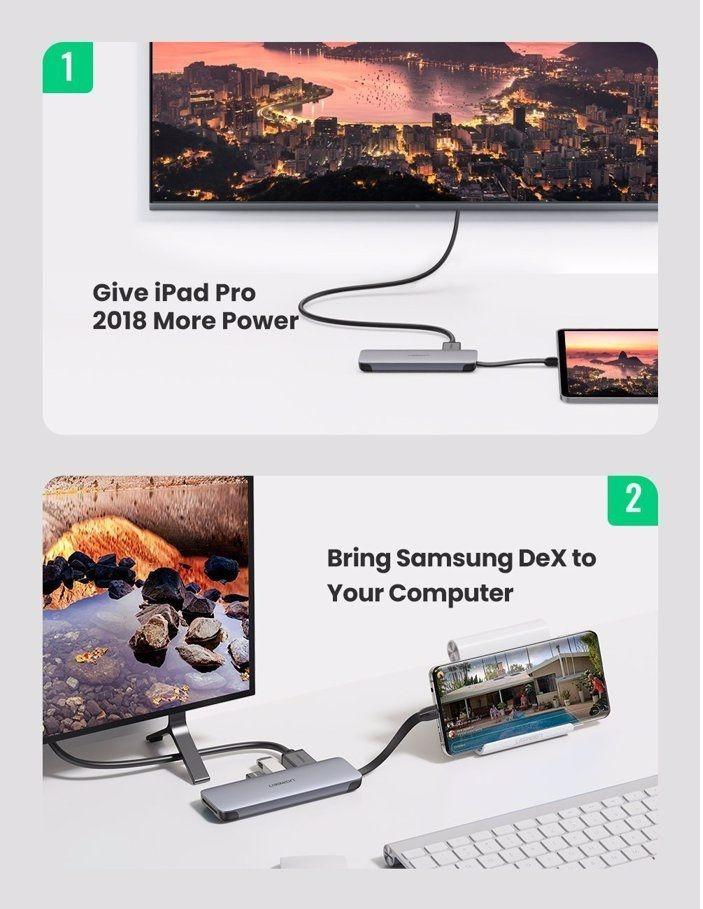 1. Hub USB C mở rộng khối lượng lớn: UGREEN USB C Hub cung cấp giải pháp đơn giản để nâng cấp PC của bạn, mở rộng Cổng 3xUSB 3.0, Gigabit Ethernet và cổng sạc