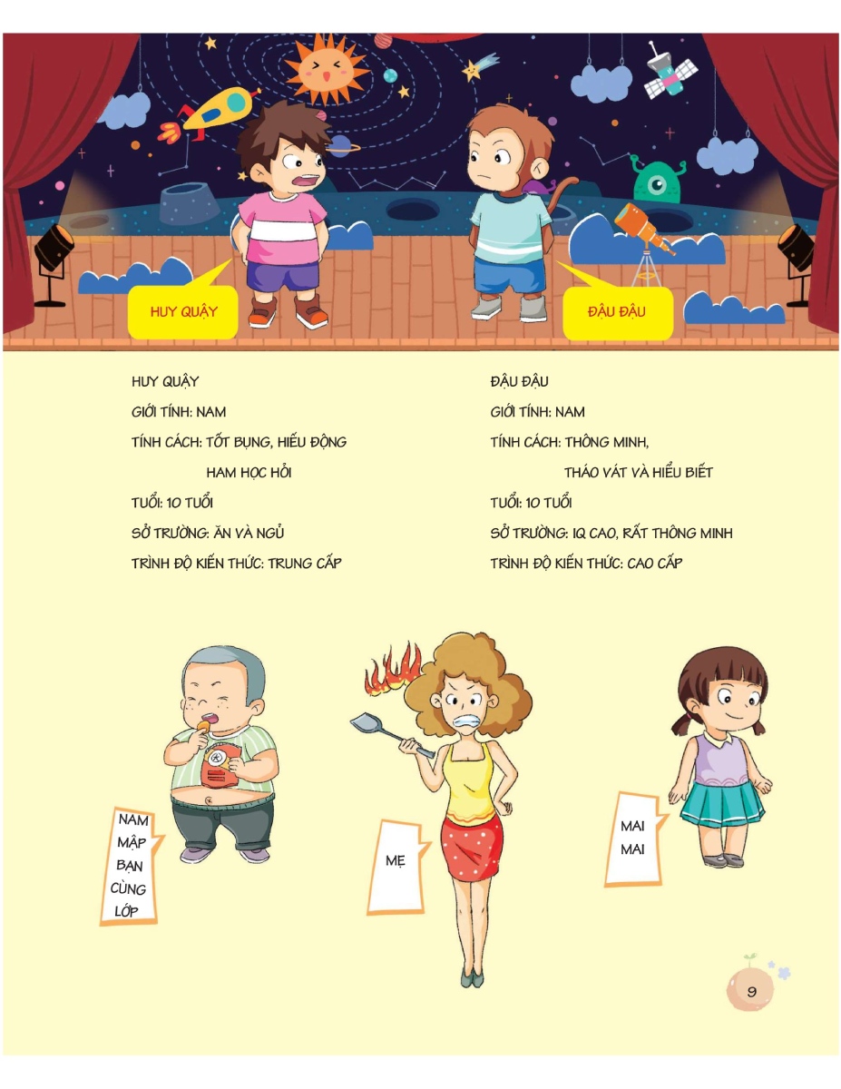 Kiến thức khoa học bổ ích sẽ trở nên thật hấp dẫn, dễ hiểu qua những chuyến phiêu lưu kỳ thú của 2 cậu bé đáng yêu Huy Quậy và Đậu Đậu. Cùng với những cuộc phiêu lưu ấy, bé sẽ có được lời giải đáp ngắn gọn, súc tích về nhưng câu hỏi trước thế giới diệu kỳ.