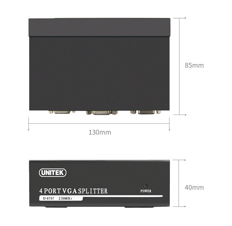Unitek U8707 - 01 Bộ Chia VGA Unitek 1 ra 4 Hỗ Trợ Độ Phân Giải 1920*1440 @60Hz Khoảng Cách Truyền Xa Lên Tới 30m - Kèm Nguồn AnZ - Hàng Chính Hãng Hỗ trợ