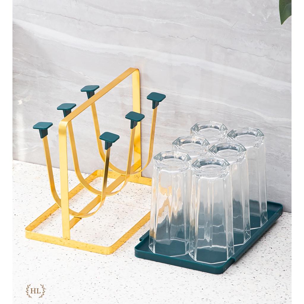 Giá cắm 6 chiếc cốc dạng gọn (CL95965) Giá có khay hứng nước Chất liệu sắt sơn tĩnh điện cao cấp màu vàng cực sang chảnh Dễ vệ sinh, không bị hoen rỉ Kiểu dáng