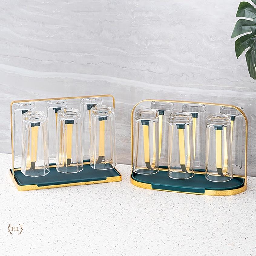 Giá úp ly, kệ úp cốc, chất liệu hợp kim mạ vàng sang trọng, Kèm khay hứng nước