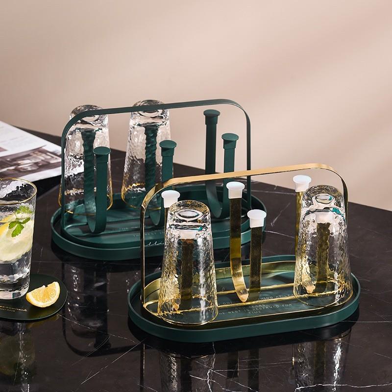 Khay up cốc, giá để ly cao cấp hợp kim mạ vàng sang trọng tặng kèm khay hứng #giadung #reels