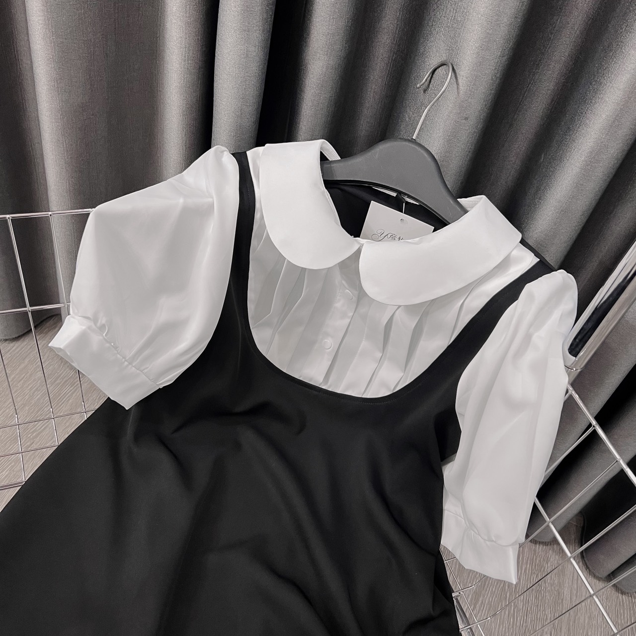 Váy bầu yếm liền thân phối cổ sơ mi đẹp, đầm yếm bầu công sở, MLEE SHOP