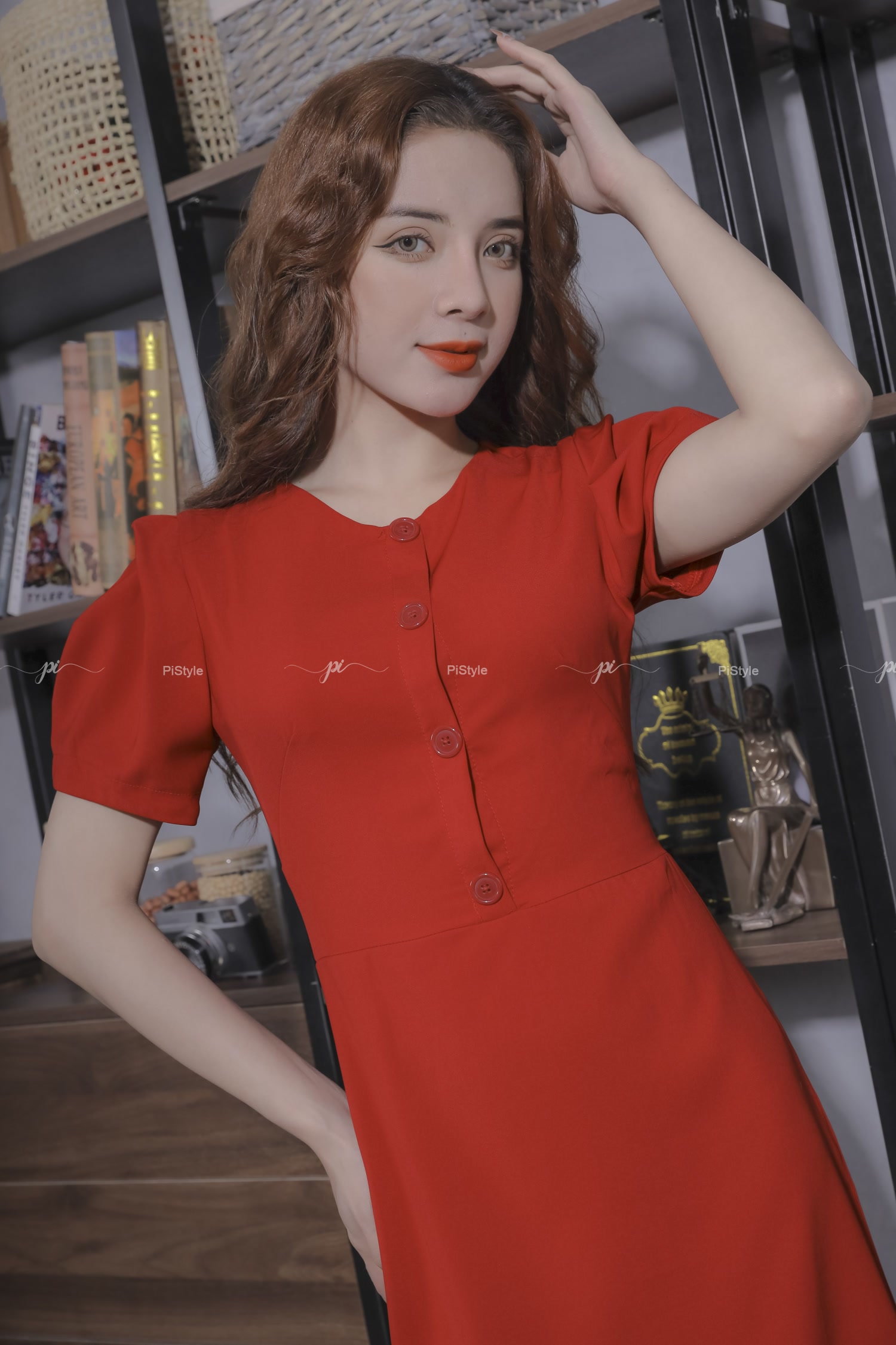 Váy Vải Trơn Cúc Trước Màu Đỏ Pi Home Of Beauty Made With Love 23V059