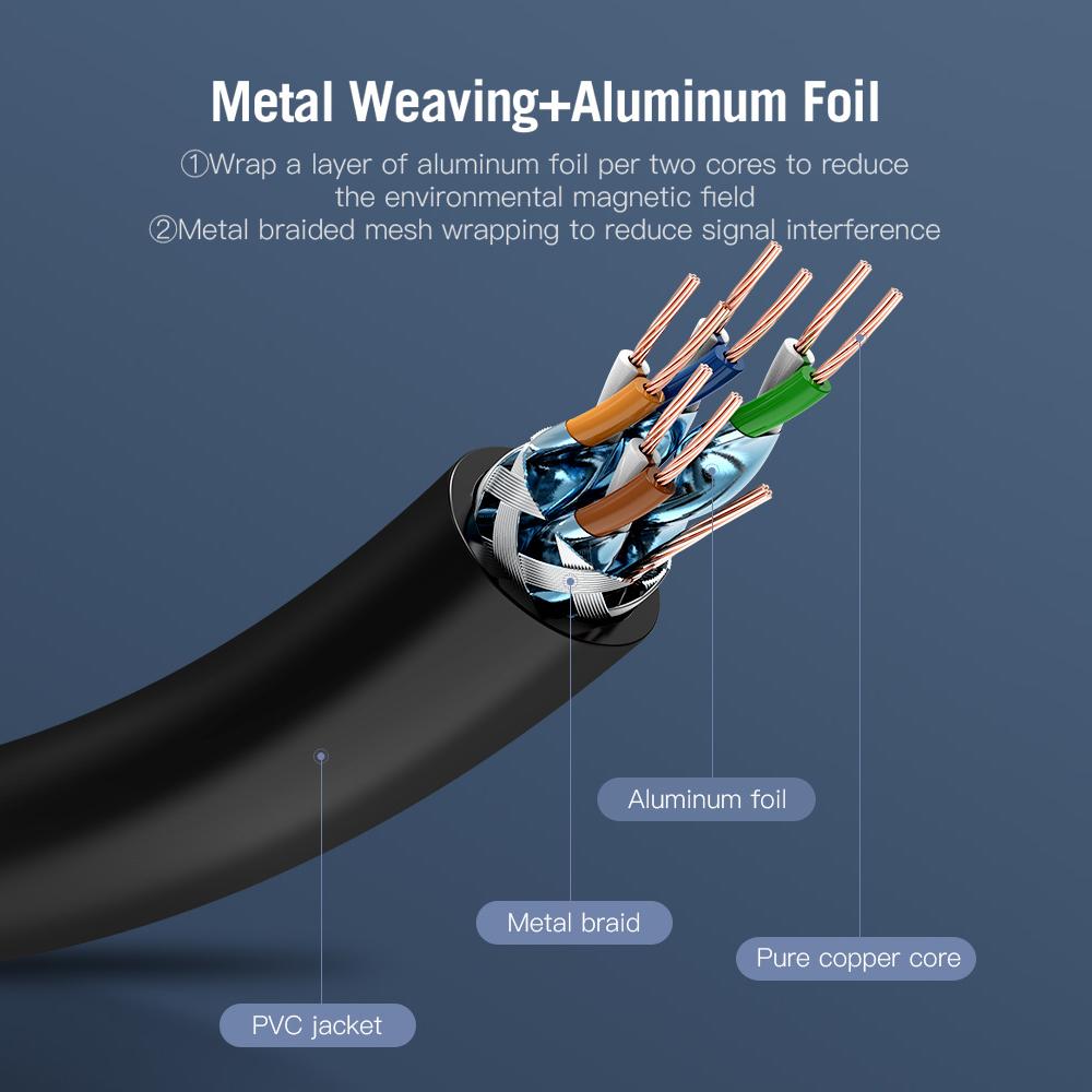 Description: The GAT7 SSTP high speed ethernet cable uses double shielding technology to reduce environmental magnetic fields and signal interference.Its bold pure copper wire core and twisted structure can reduce internal crosstalk and ecternal electromagnetic