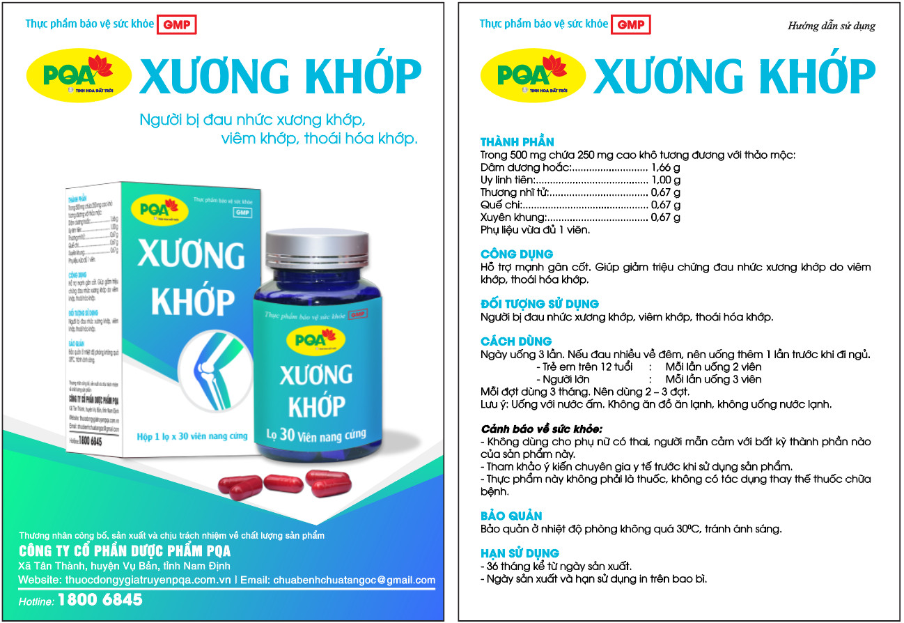 Viên nang PQA Xương Khớp hộp 30 viên là dược phẩm thảo dược cho người bị đau nhức xương khớp, viêm khớp, thoái hóa khớp, hỗ trợ mạnh gân cốt, giúp giảm triệu chứng đau nhức xương khớp do viêm khớp, thoái hóa khớp.