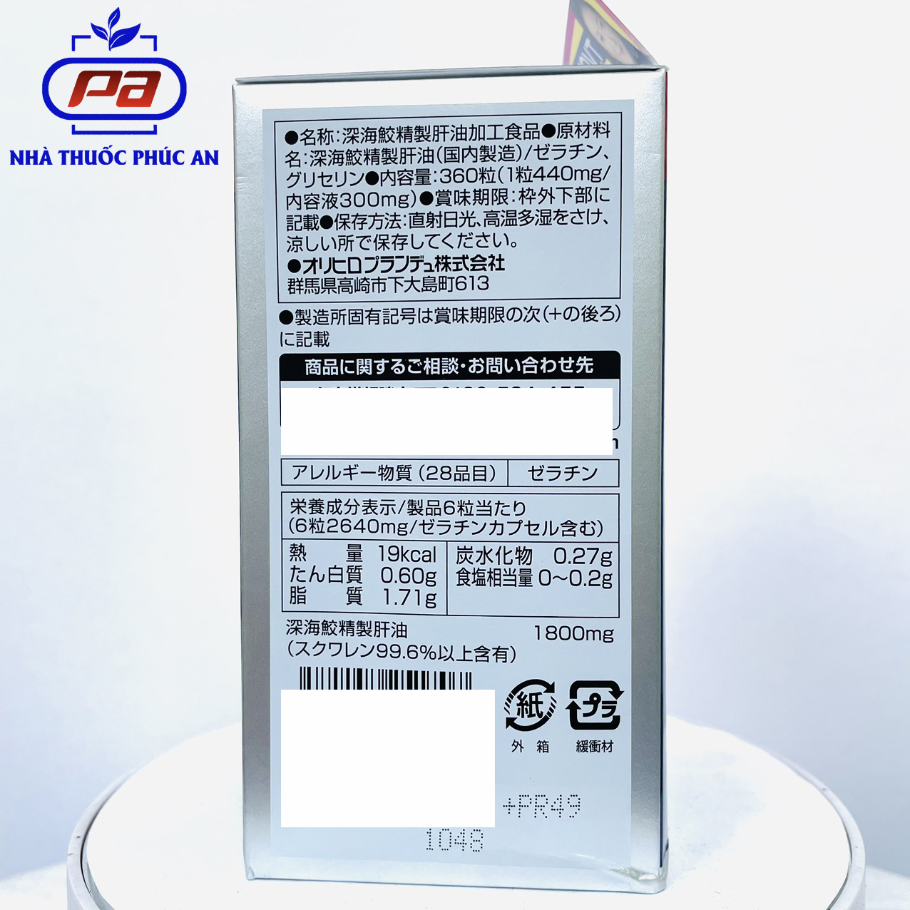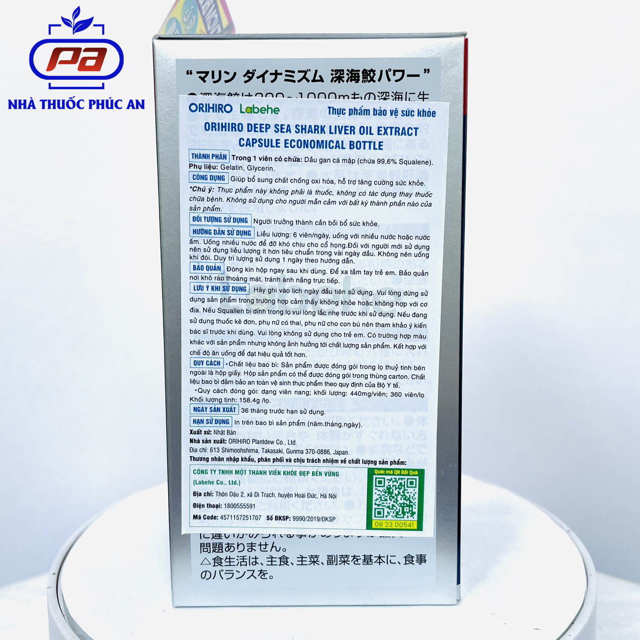 Viên uống dầu gan cá Squalene Orihiro Nhật Bản 360 viên hỗ trợ xương khớp, tim mạch THÔNG TIN SẢN PHẨM: