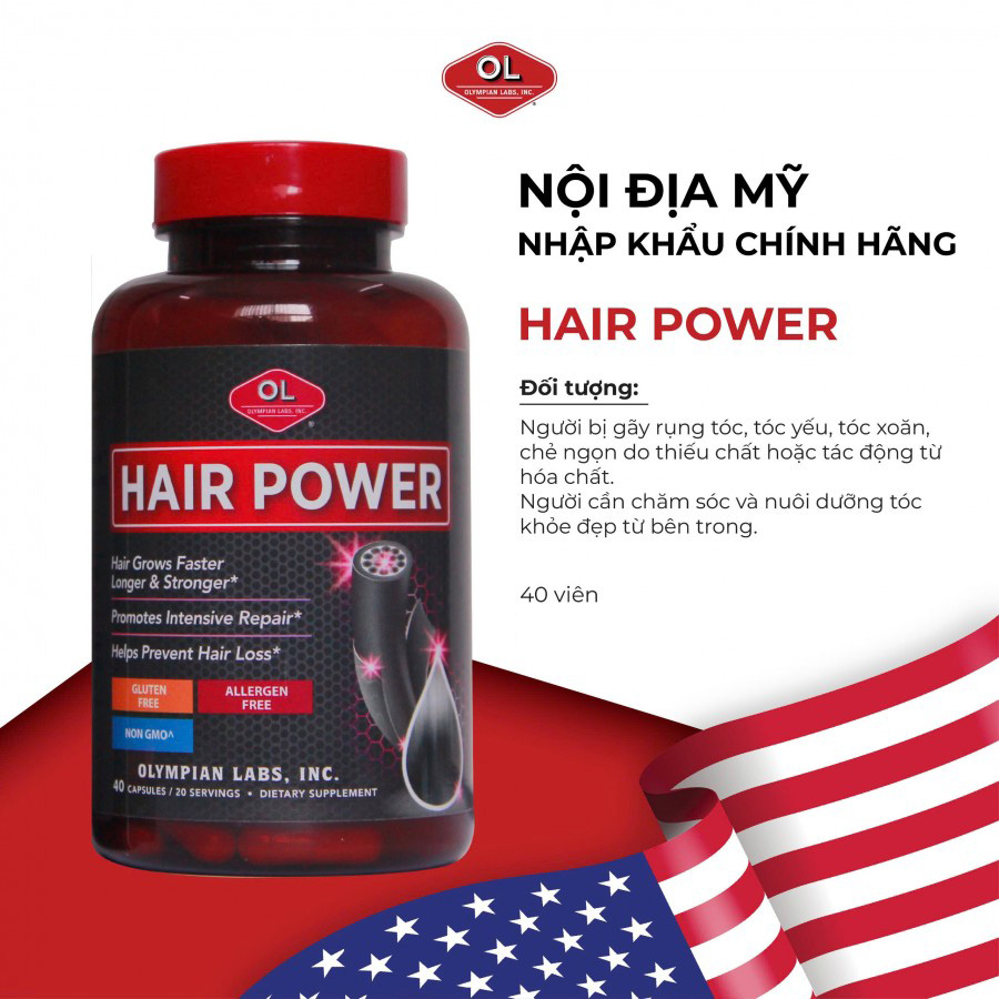 ✨Viên Uống Mọc Tóc Hair Power Olympian Labs Giảm Gãy Rụng, Kích Thích Tóc Mọc Hiệu Quả (Hộp 40 Viên)