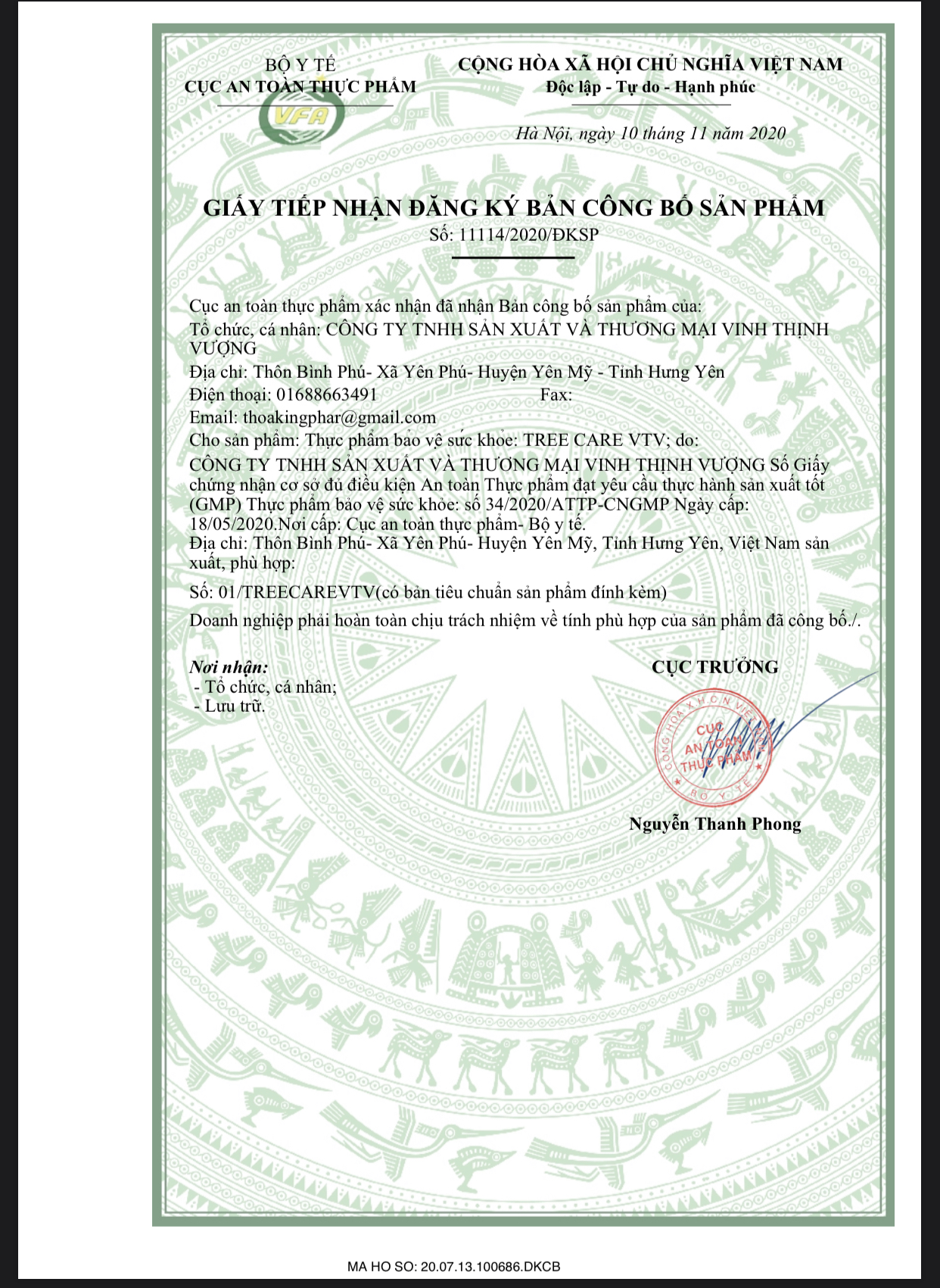 - Ngày uống 2 lần, mỗi lần 1 viên Không sử dụng cho trẻ em dưới 10 tuổi, phụ nữ có thai và cho con bú. * LƯU Ý : Sản phẩm này không phải là thuốcvà không có tác dụng thay thế thuốcchữabệnh. Bảo quản : Nơi khô ráo, thoáng mát, tránh ánh sáng. **XUẤT XỨ VÀ THƯƠNG NHÂN CHỊU TRÁCH NHIỆM VỀ CHẤT LƯỢNG HÀNG HÓA CÔNG TY CỔ PHẦN KINGPHAR VIỆT NAM Thôn Bình Phú, Xã Yên Phú, Huyện Yên Mỹ, Tỉnh Hưng Yên, Việt Nam Sản Xuất Tại : Công Ty TNHH SX Và TM Vinh Thịnh Vượng Thôn Bình Phú, Xã Yên Phú, Huyện Yên Mỹ, Tỉnh Hưng Yên, Việt Nam