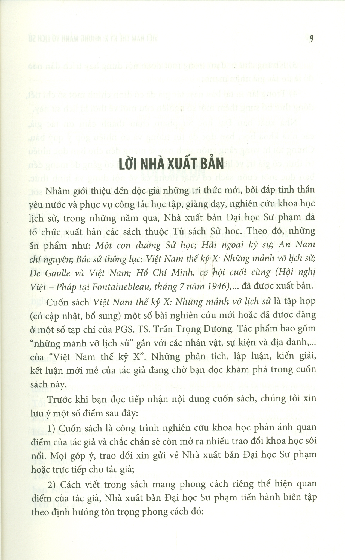 Nhà xuất bản Đại học Sư phạm chân thành cảm ơn tác giả, các nhà khoa học, bạn đọc đã tin tưởng và có nhiều góp ý quý báu. Chúng tôi hi vọng rằng cuốn sách này sẽ mang đến cho bạn đọc nhiều tri thức có giá trị về lịch sử dân tộc. Chúng tôi đã cố gắng để mang đến bạn đọc một cuốn sách có chất lượng cả về nội dung và hình thức. Tuy nhiên, trong quá trình biên tập khó tránh khỏi những thiếu sót.