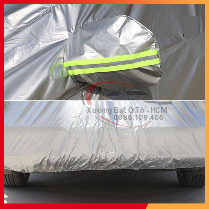 Vải cao cấp 2 mặt dầy dặn, lớp ngoài tráng nhôm cao cấp giúp phản chiếu nắng và cách nhiệt. Lớp trong là lớp nỉ cao cấp chống xước bảo vệ lớp sơn của xe.