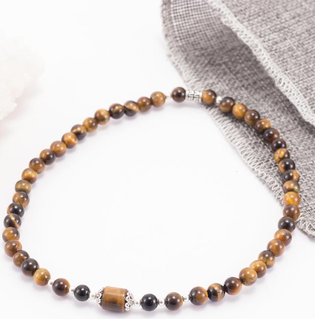 Vòng tay thiên nhiên đá mắt hổ vàng tâm phối charm bạc - Hợp mệnh kim, thổ | Ngọc Quý Gemstones |