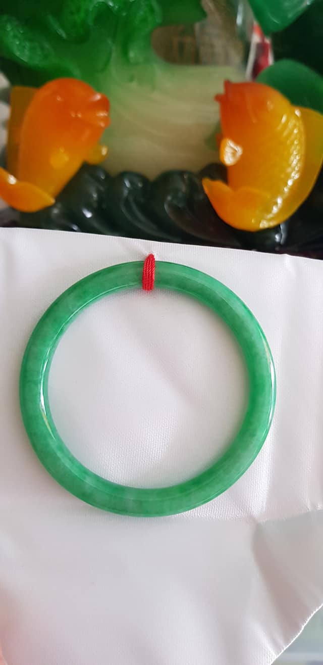 CHIẾC VÒNG TAY PHONG THỦY ĐÁ CẨM THẠCH LÝ ĐẸP K 54MM x DẦY 8MM MÀU XANH LÁ ĐỀU BÓNG ĐẸP NỮ MỆNH HỎA MỘC NỮ CÂN NẶNG 53kg đến 64kg Đeo Đẹp Tay ạ