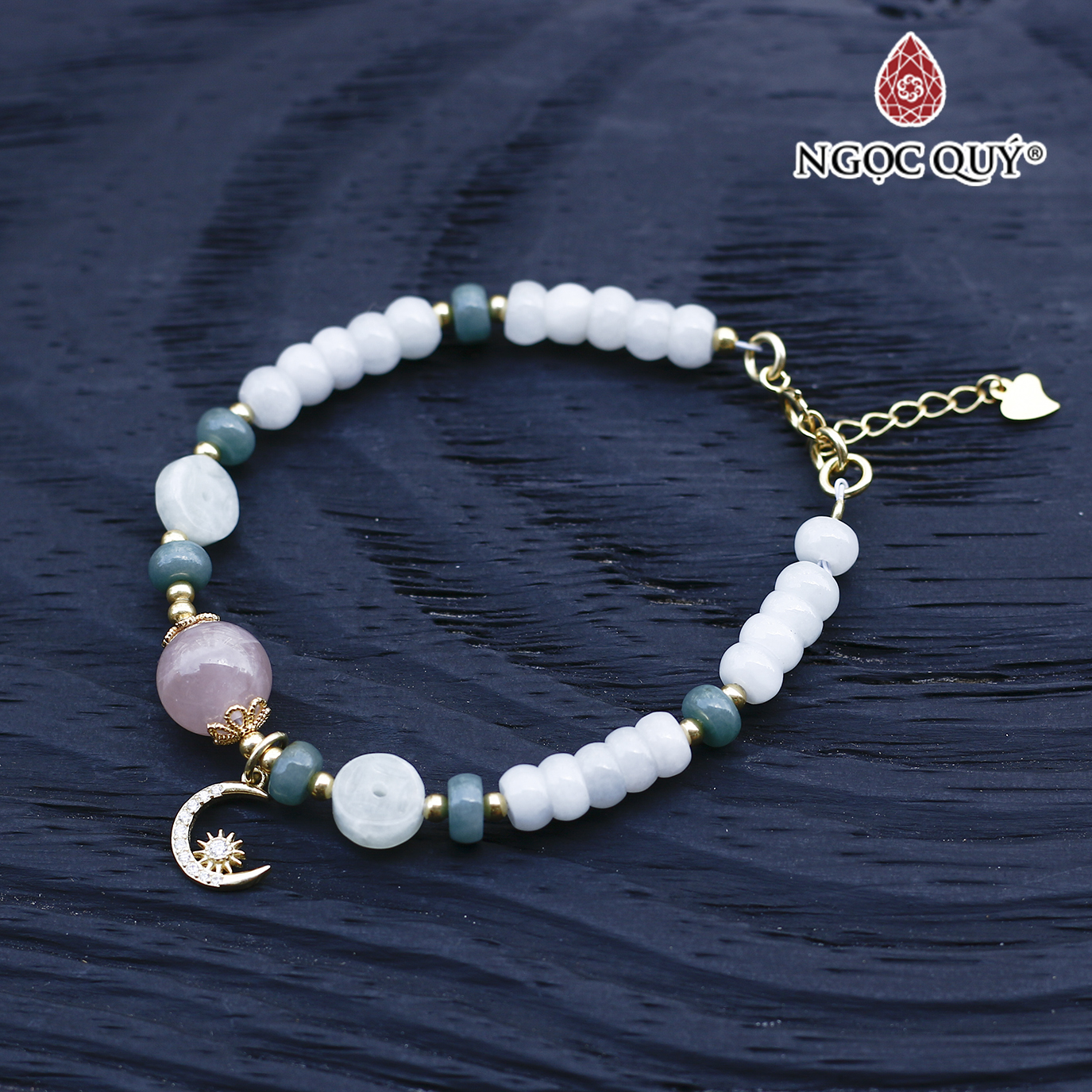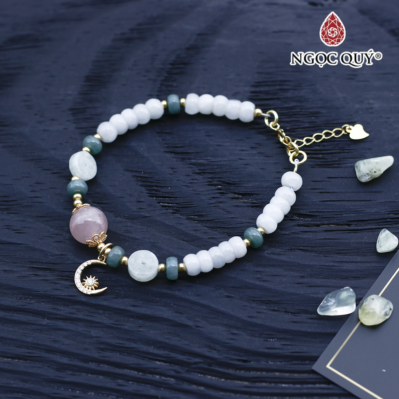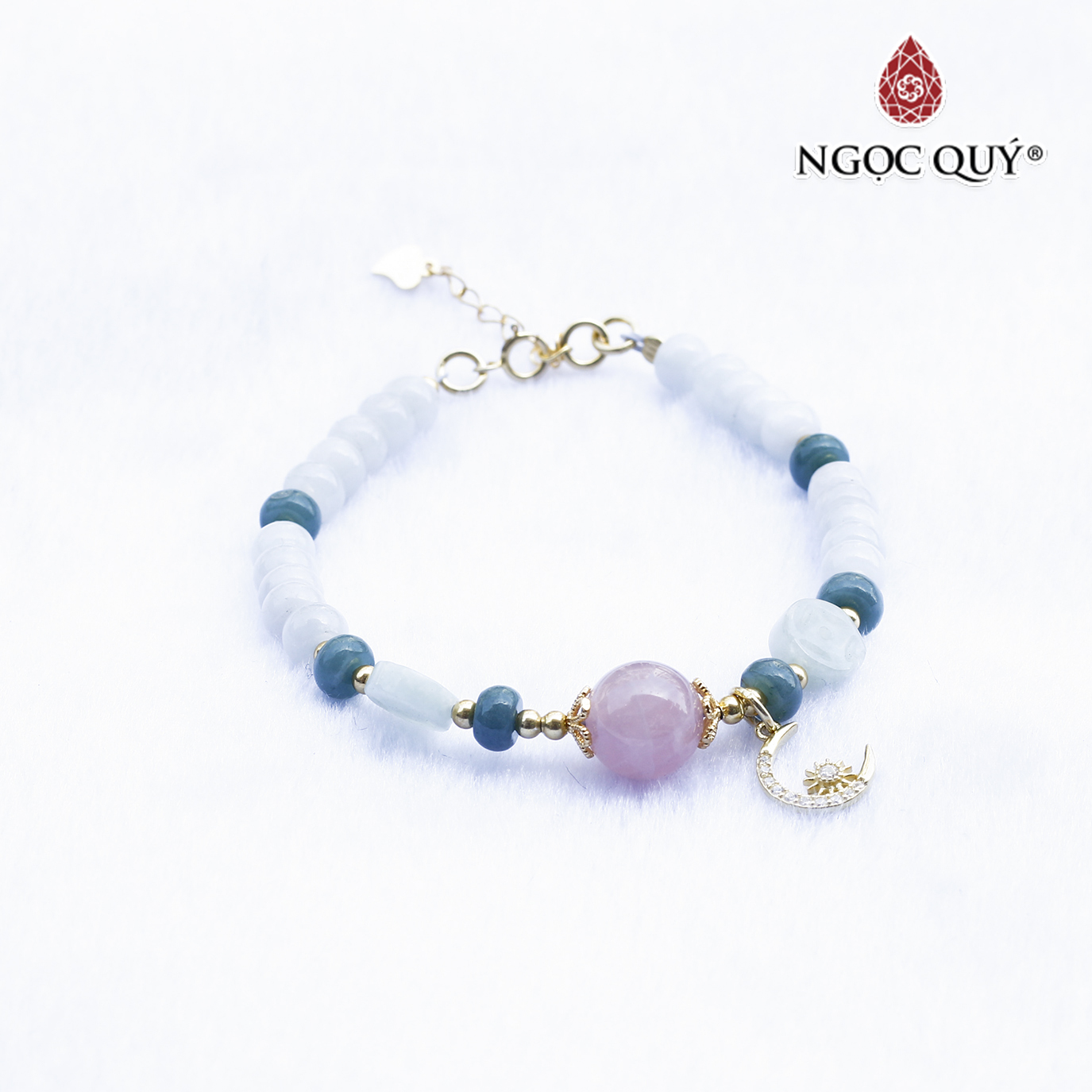 VÒNG TAY ĐÁ CẨM THẠCH PHỈ THÚY PHỐI THẠCH ANH HỒNG: