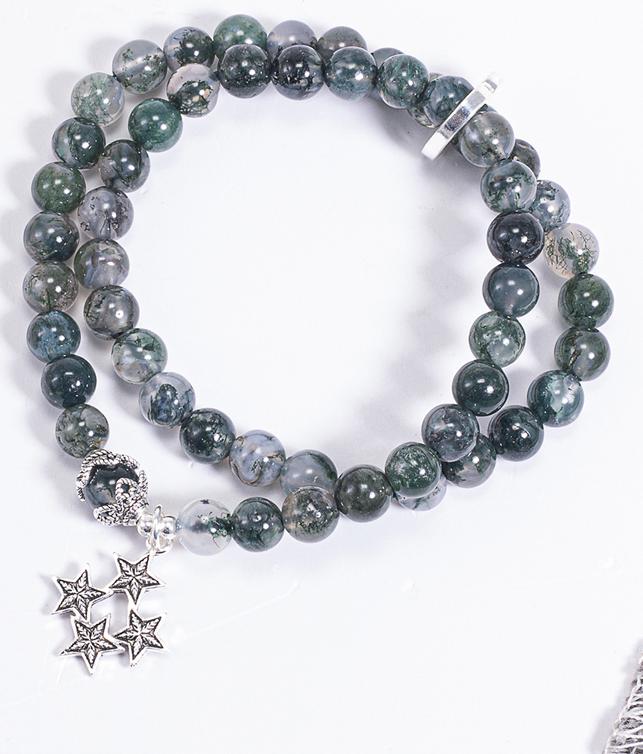 Từ lâu người ta đã biết đến đá băng ngọc thủy tảo giống như một sản phẩm vô cùng tuyệt vời và được biết đến với 1 tên gọi khách là "mã não rêu" vốn rất quen thuộc với phái đẹp. Từ đó giúp đem lại cho người sở hữu tài lộc, may mắn và bình an. Vòng Chuỗi Hạt Đeo Tay 2 Lines Đá Băng Ngọc Thủy Tảo Phối Charm Ngôi Sao (6mm) mệnh Mộc, Hỏa được làm từ đá băng ngọc thủy tảo vốn chưa hề mất đi vị trí "độc tôn" và rất được yêu thích đối với những người chơi phong thủy.
