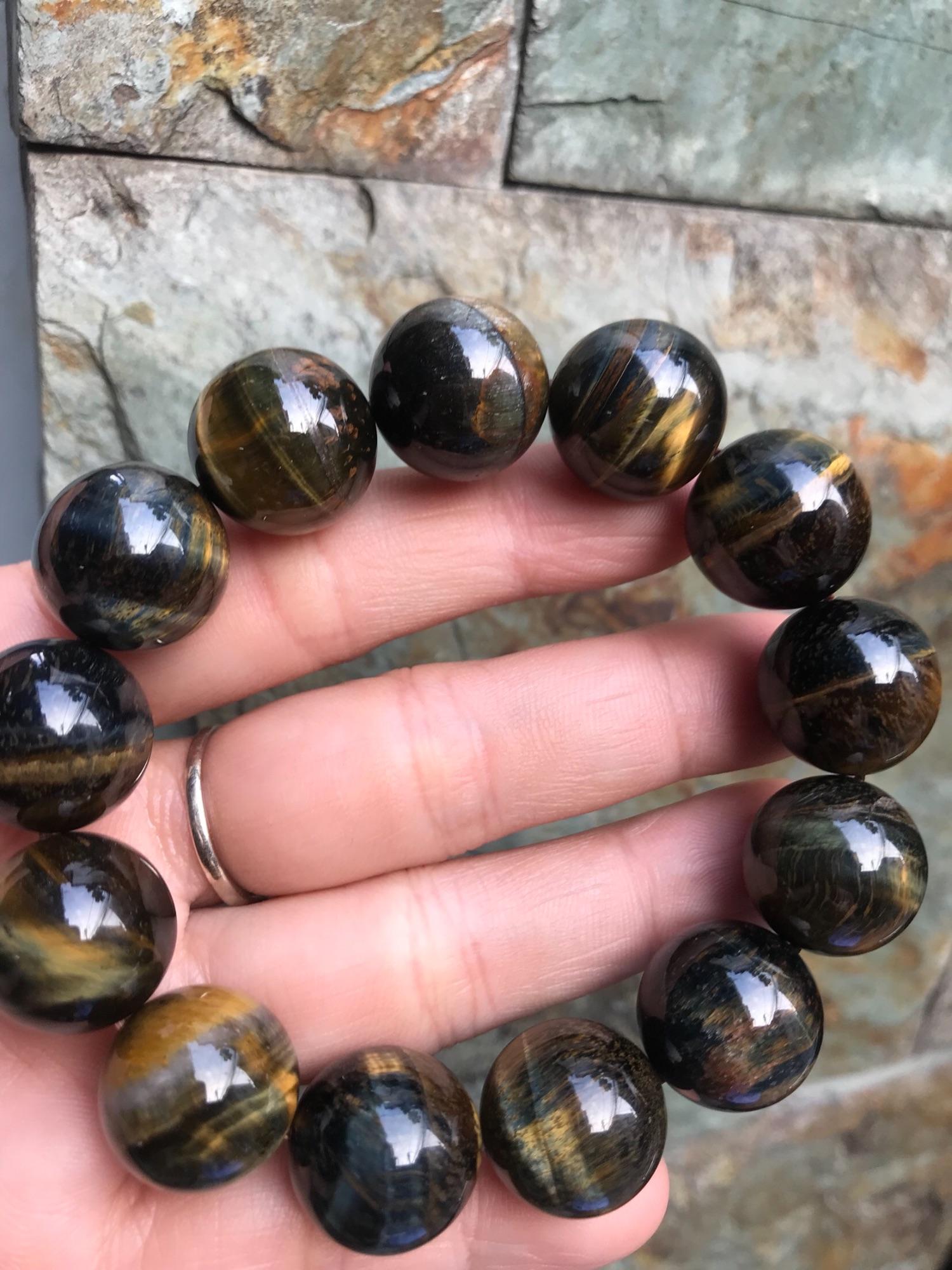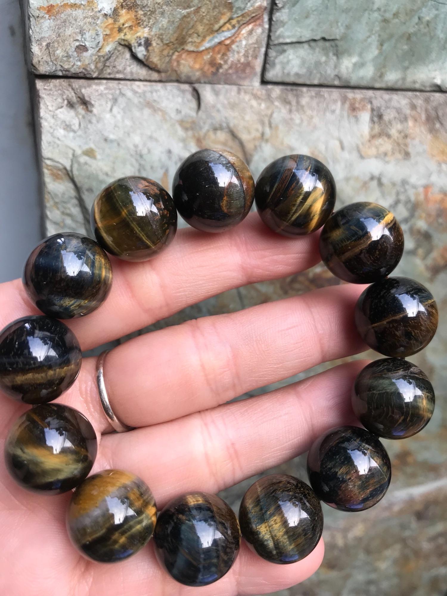 Vòng tay đá mắt hổ tự nhiên size to 20mm #vongtayphongthuy #vongtaydamauvang