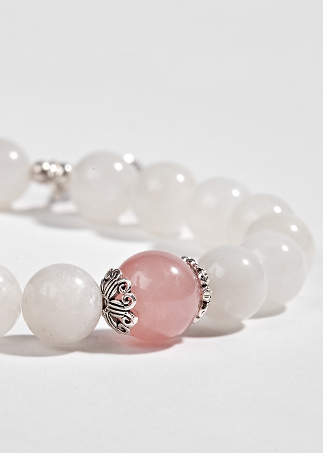 Vòng Đá Xà Cừ Trắng Phối Charm Bạc (8mm) Ngọc Quý Gemstones mang vẻ đẹp giống như Ngọc Trai, được mệnh danh là “Mẹ của Ngọc Trai”.