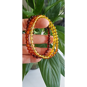 Vòng Hổ Phách tự nhiên đeo quấn tay kiểu 3 vòng Size hạt 5mm 3 màu tam hợp màu vàng anh cam đỏ đậm ạ
