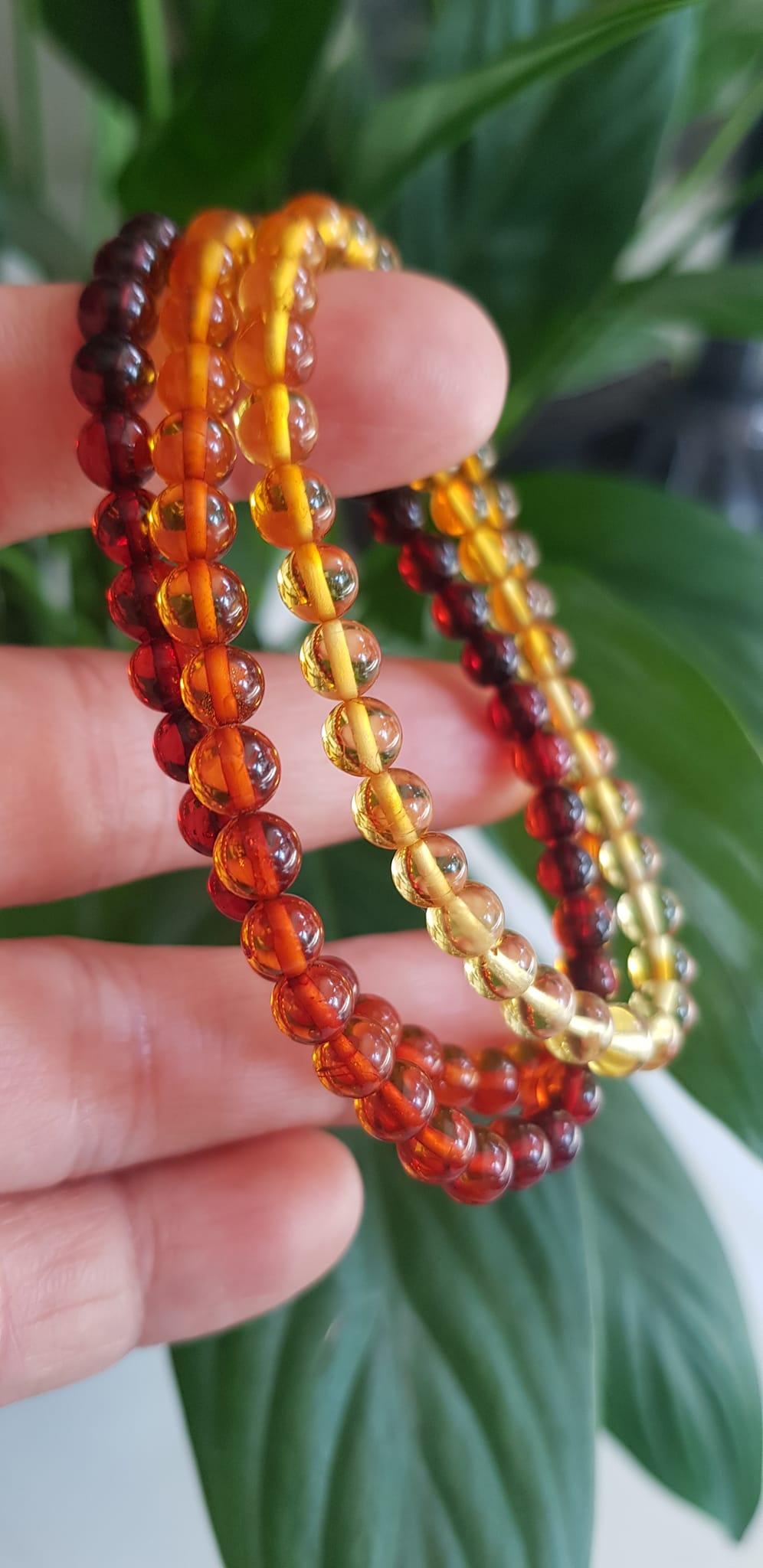✨Vòng Hổ Phách tự nhiên đeo quấn tay kiểu 3 vòng Size hạt 5mm 3 màu tam hợp màu vàng anh cam đỏ đậm phối tay các Chị Em Nữ lên tay đeo rất xinh ạ