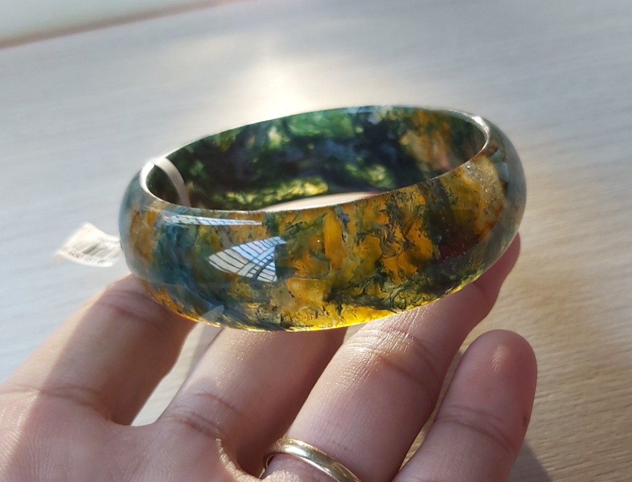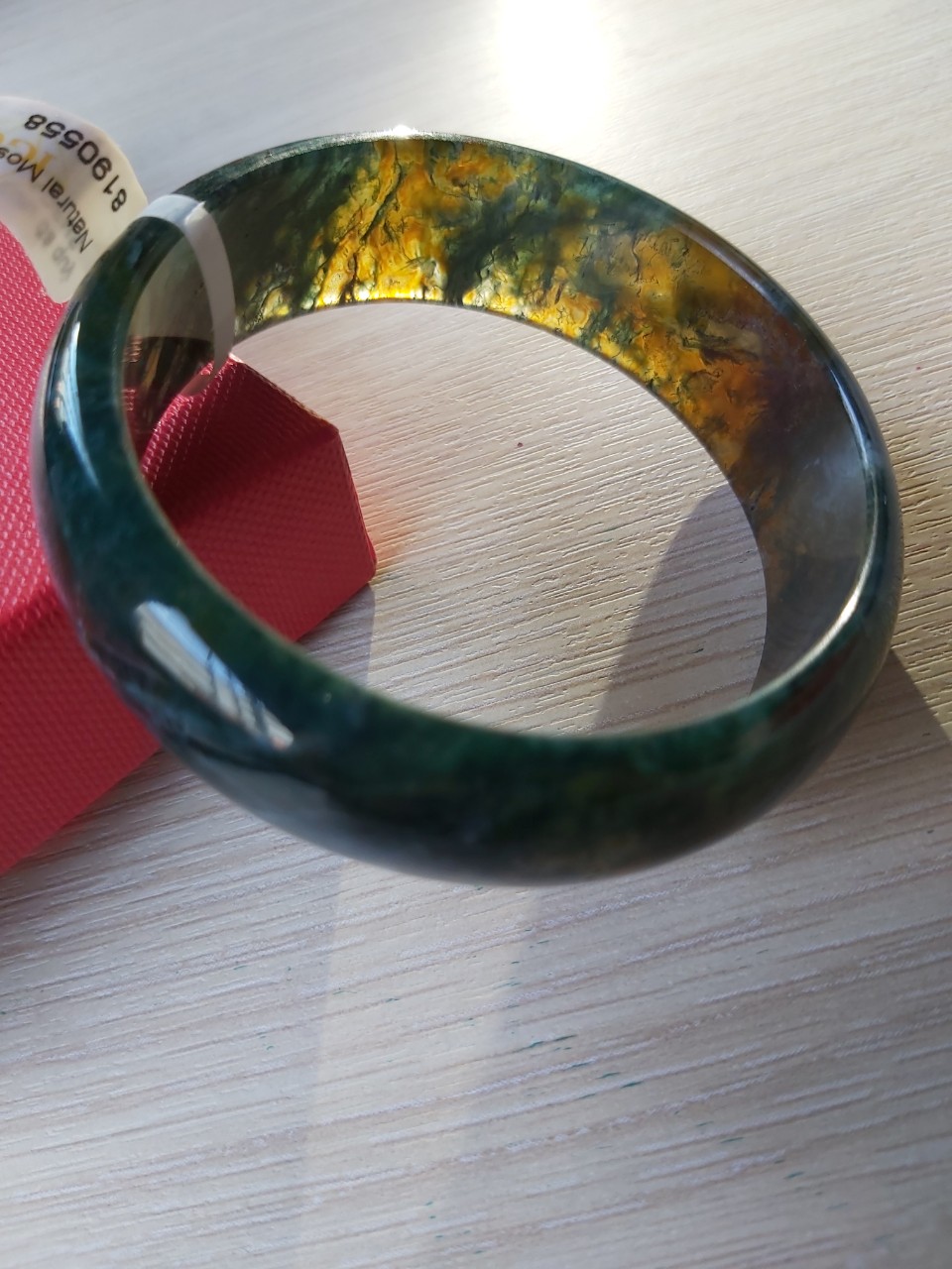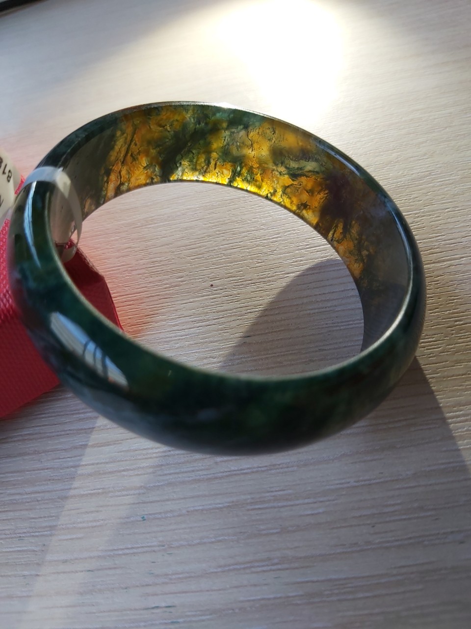 CHIẾC VÒNG TAY PHONG THỦY ĐÁ CẨM THẠCH LÝ ĐẸP K 54MM x DẦY 8MM MÀU XANH LÁ ĐỀU BÓNG ĐẸP NỮ MỆNH HỎA MỘC NỮ CÂN NẶNG 53kg đến 64kg Đeo Đẹp Tay ạ