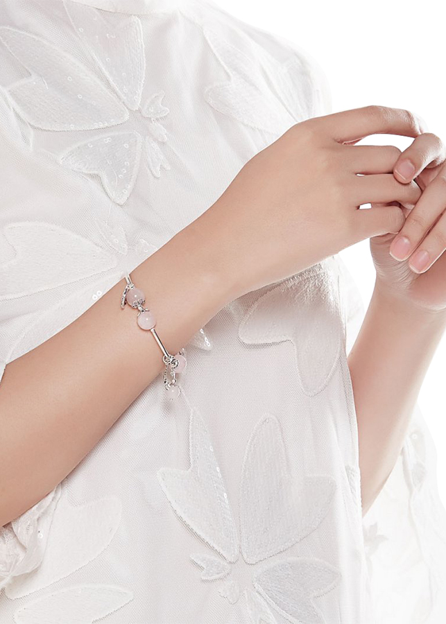 VÒNG TAY ĐÁ THẠCH ANH HỒNG PHỐI CHARM BẠC TRÒN: Theo thần thoại, Thần Tình Yêu đã ban tặng cho con người món quà tình yêu dưới dạng Thạch Anh Hồng. Truyền thuyết này là