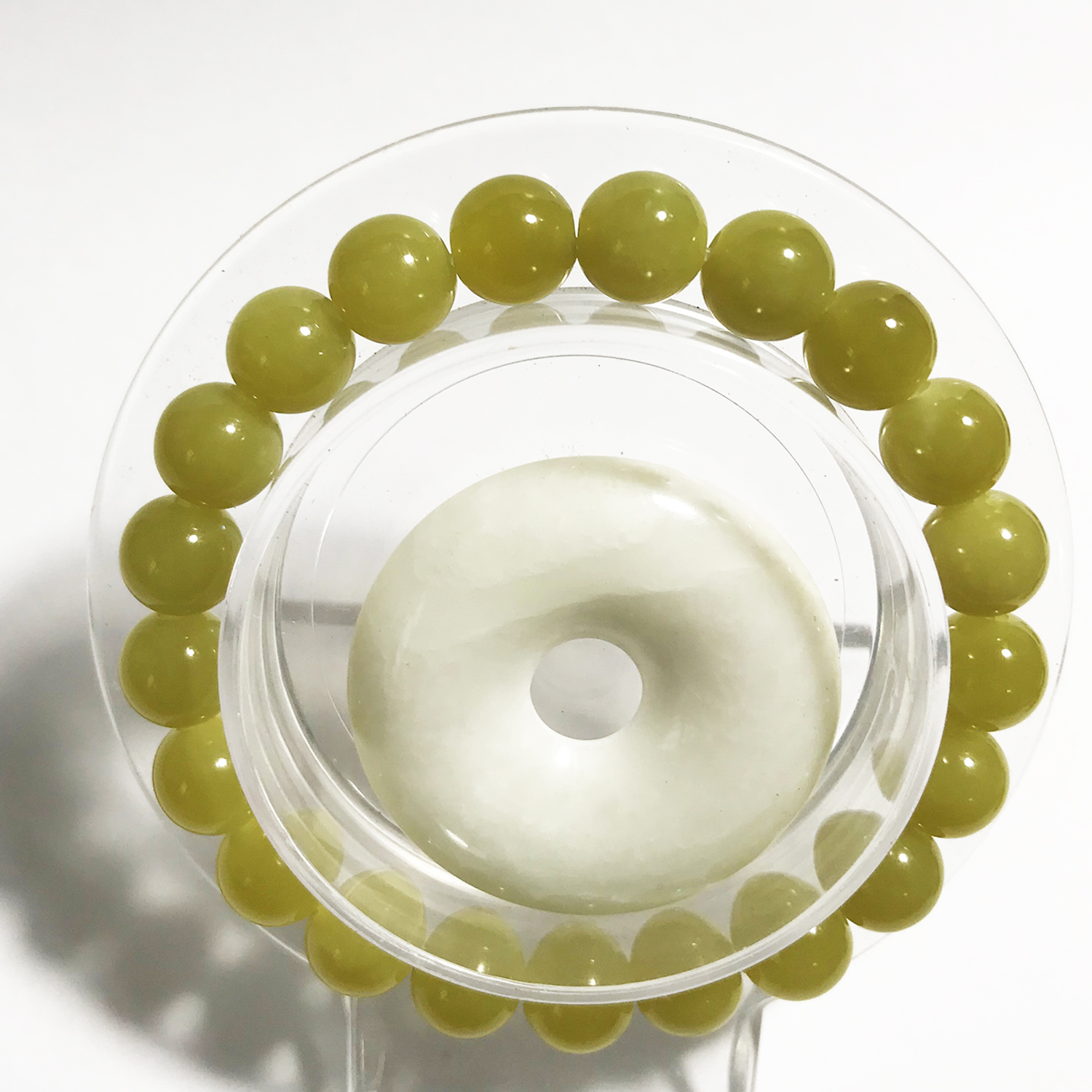 ✨Vòng tay chuỗi hạt ngọc serpentine hạt 10 li ( hạt 1cm) cho người mệnh Thủy và kim vàng chanh và bạch ngọc là ngọc thật của Việt Nam Vongtaymenhthuykim