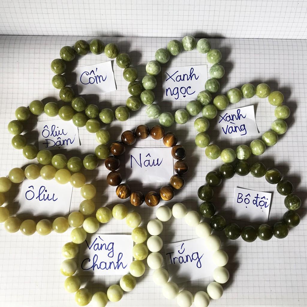 VÒNG TAY CHUỖI HỘT ĐÁ THẬT CỦA VIỆT NAM CHẾ TÁC THỦ CÔNG 1.Vòng tay ngọc một trăm phần trăm từ đá dòng ngọc thật của Việt nam với tên sơ pen tine chế tác thủ công tại VN 2.Màu sắc: xanh lá đậm, xanh lá nhạt, vàng nghệ, xanh ô liu đậm và xanh o liu nhạt, màu đỏ boocdo đủ màu ểu dáng: Vòng hạt đường kính hạt là 1cm ( 9-10 ly) nếu cần hạt to hơn bạn có thể sang sản phẩm khác của shop