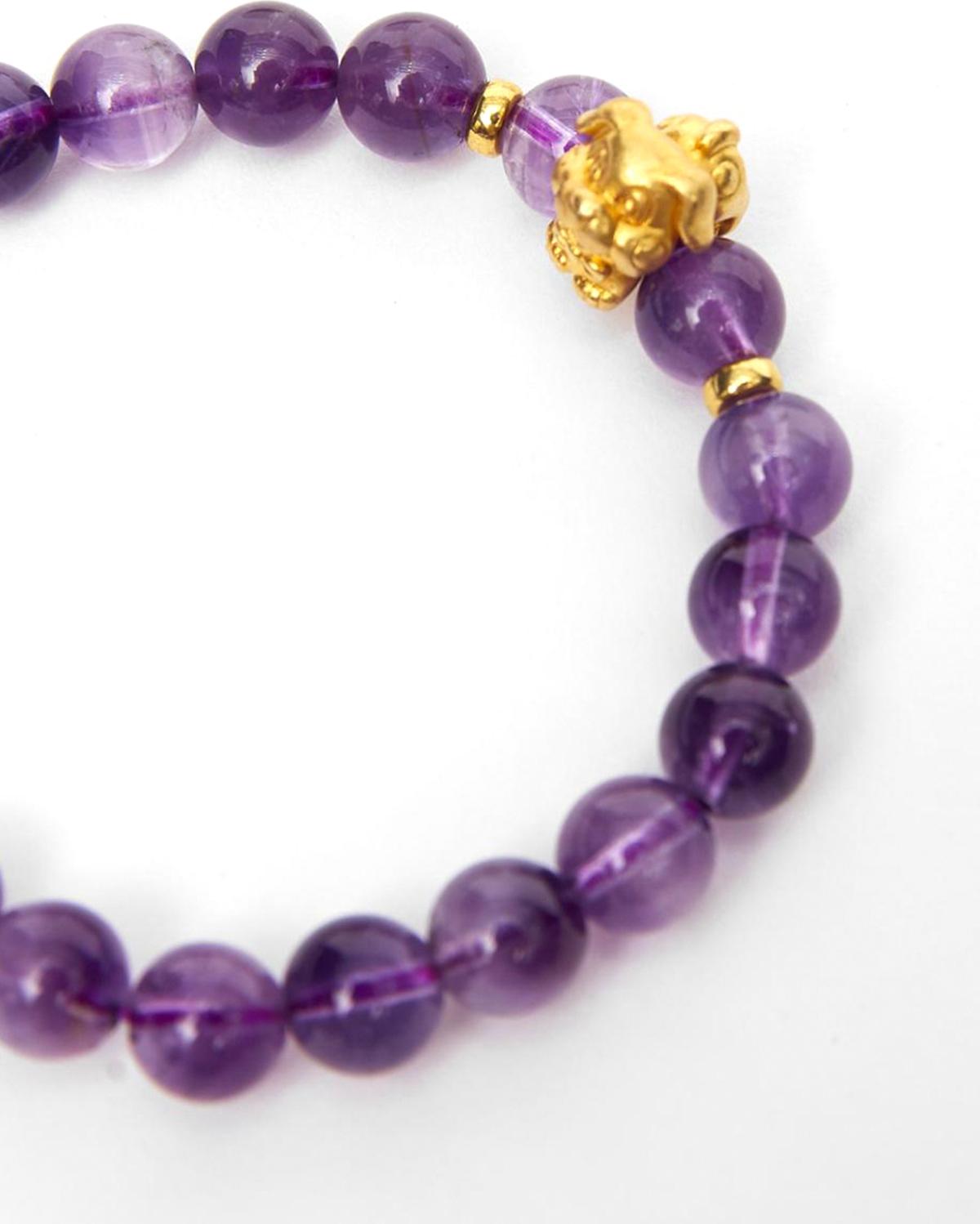 Vòng tay đá thạch anh tím charm tuổi tuất bạc mạ vàng 24K 8mm mệnh hỏa, thổ - Ngọc Quý GemstonesVòng tay đá thạch anh tím charm tuổi tuất bạc mạ vàng 24K 8mm mệnh hỏa, thổ - Ngọc Quý Gemstones
