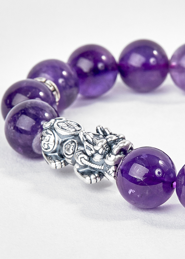 Vòng tay đá Thạch Anh Tím mix tỳ hưu bạc ITác dụng vòng phong thủy đá thạch anh Tím ?