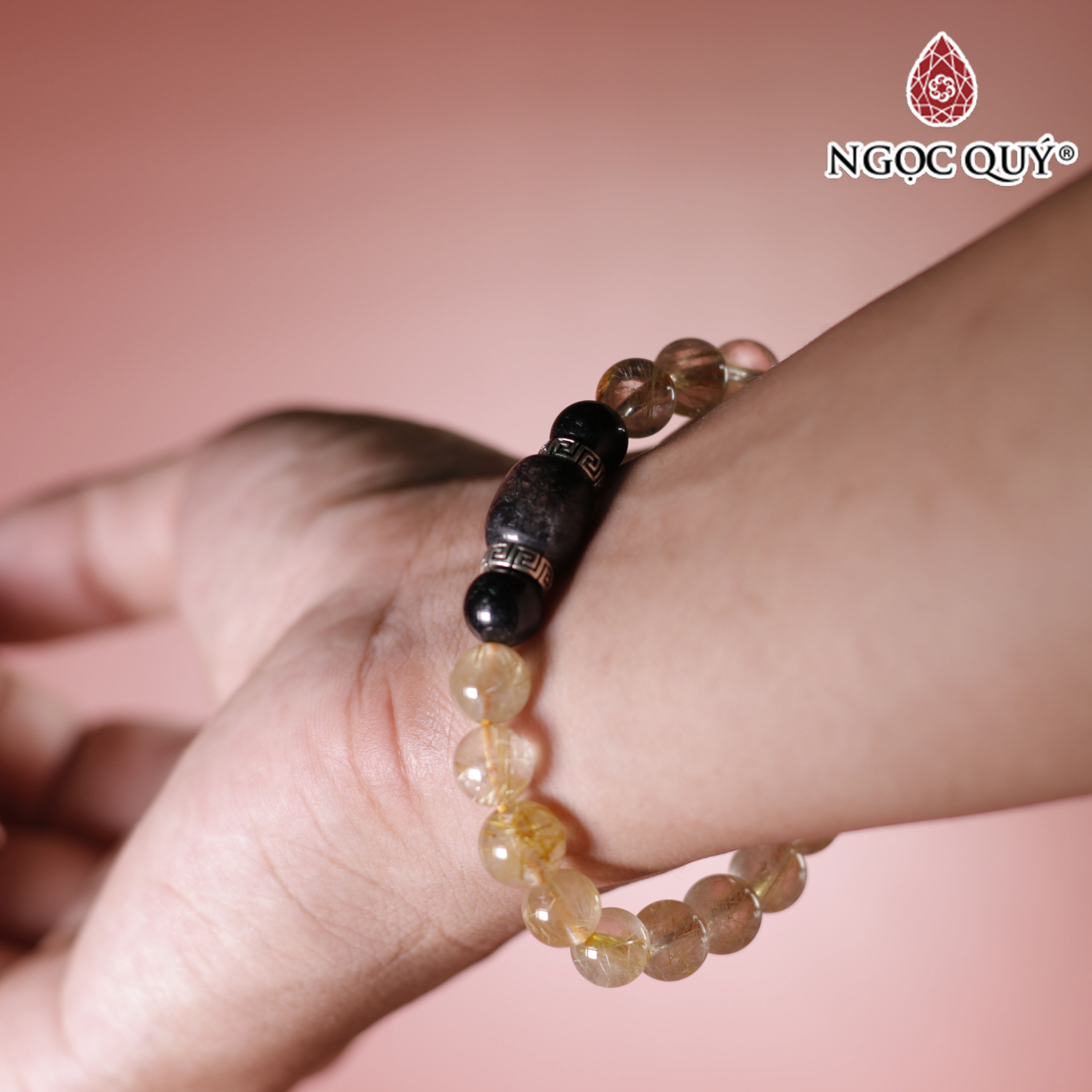 ✨Vòng tay đá thạch anh tóc vàng mix tóc đen mệnh thủy, kim - Ngọc Quý Gemstones