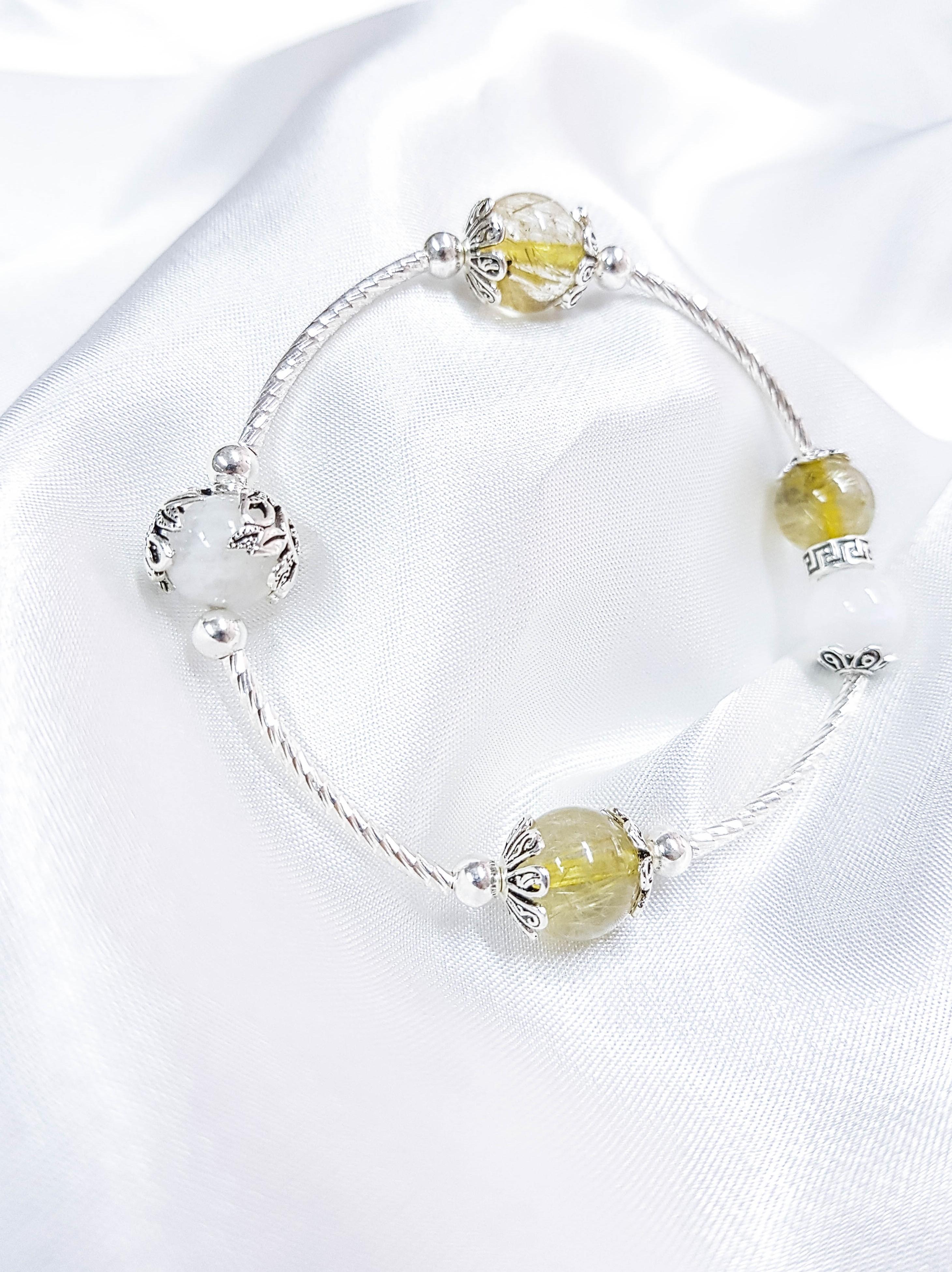 VÒNG TAY ĐÁ THẠCH ANH TÓC VÀNG : Thạch Anh Tóc Vàng có màu sắc rực rỡ mê hoặc lòng người, cộng với sự quý hiếm khó tìm trong tự nhiên, là loại đá có