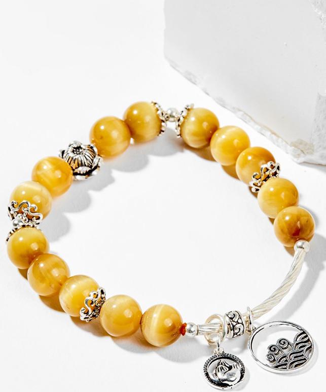 Vòng Tay Phong Thủy Nữ Đá Mắt Hổ Vàng Tâm Phối Charm Hoa Sen Bạc (8mm) Mệnh Thổ, Kim Từ xưa đến nay đá mắt hổ vàng tâm như một viên đá vô cùng tuyệt