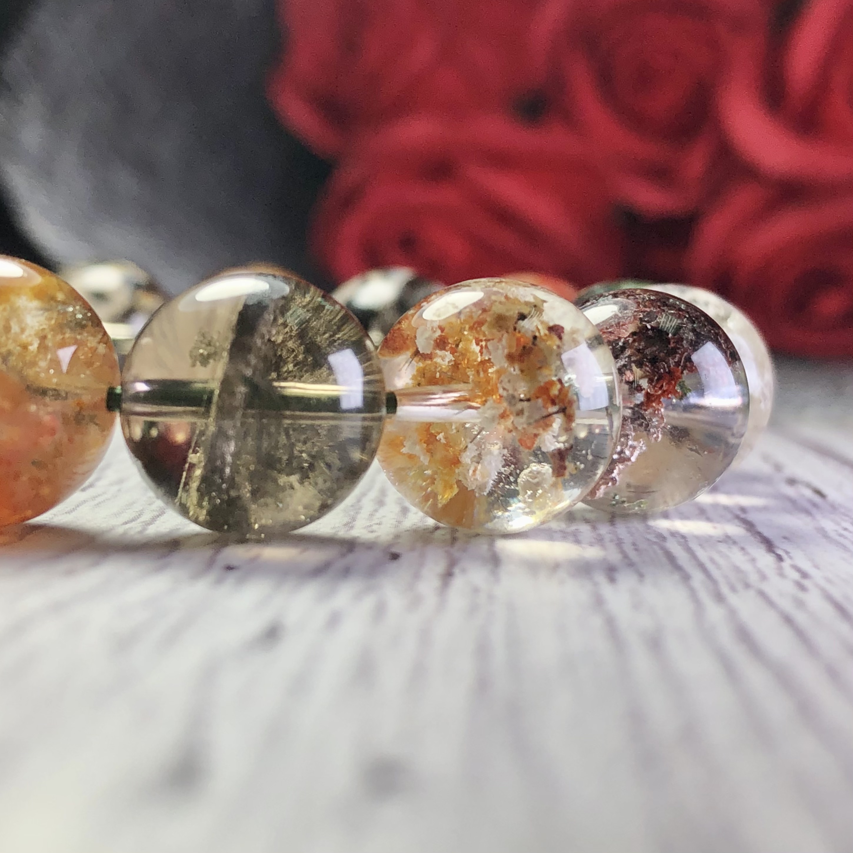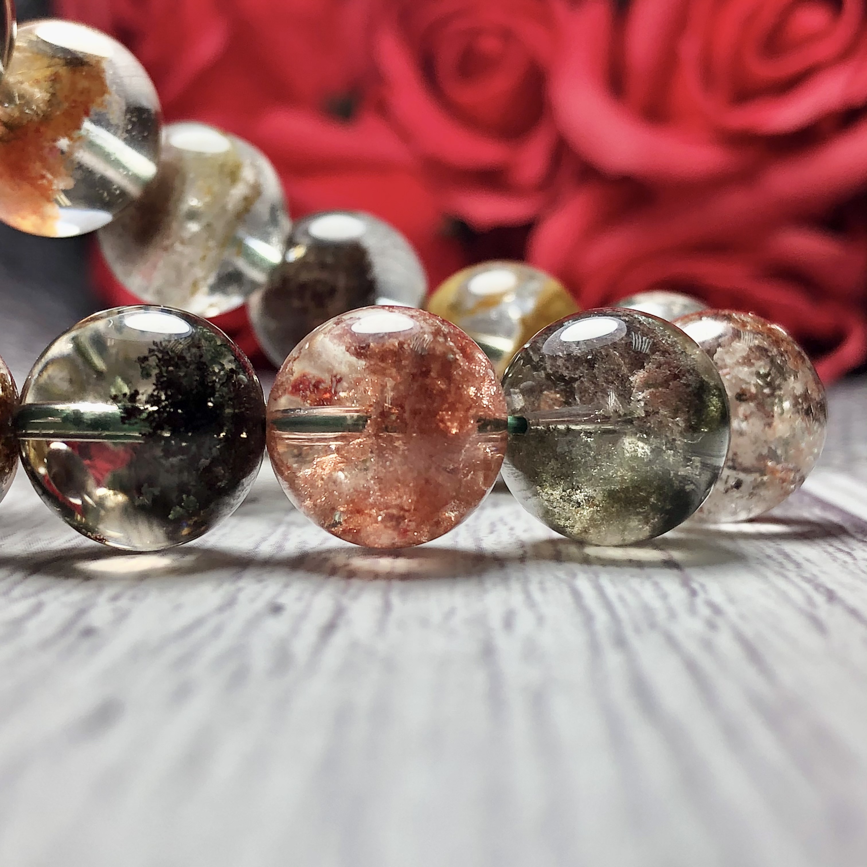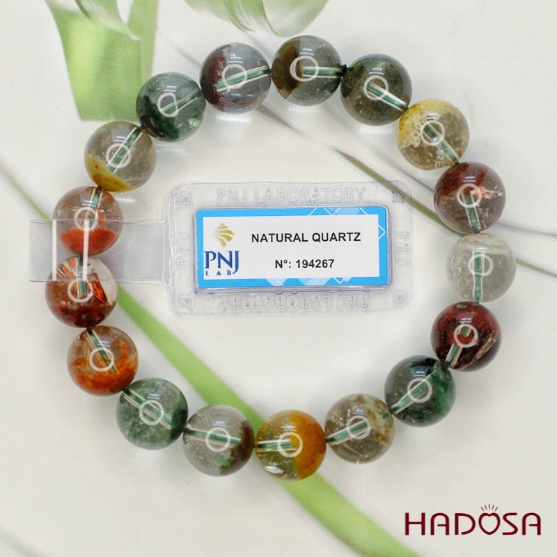 Vòng tay Thạch Anh Ưu Linh hoa đa sắc 12mm cao cấp chuẩn 6A
