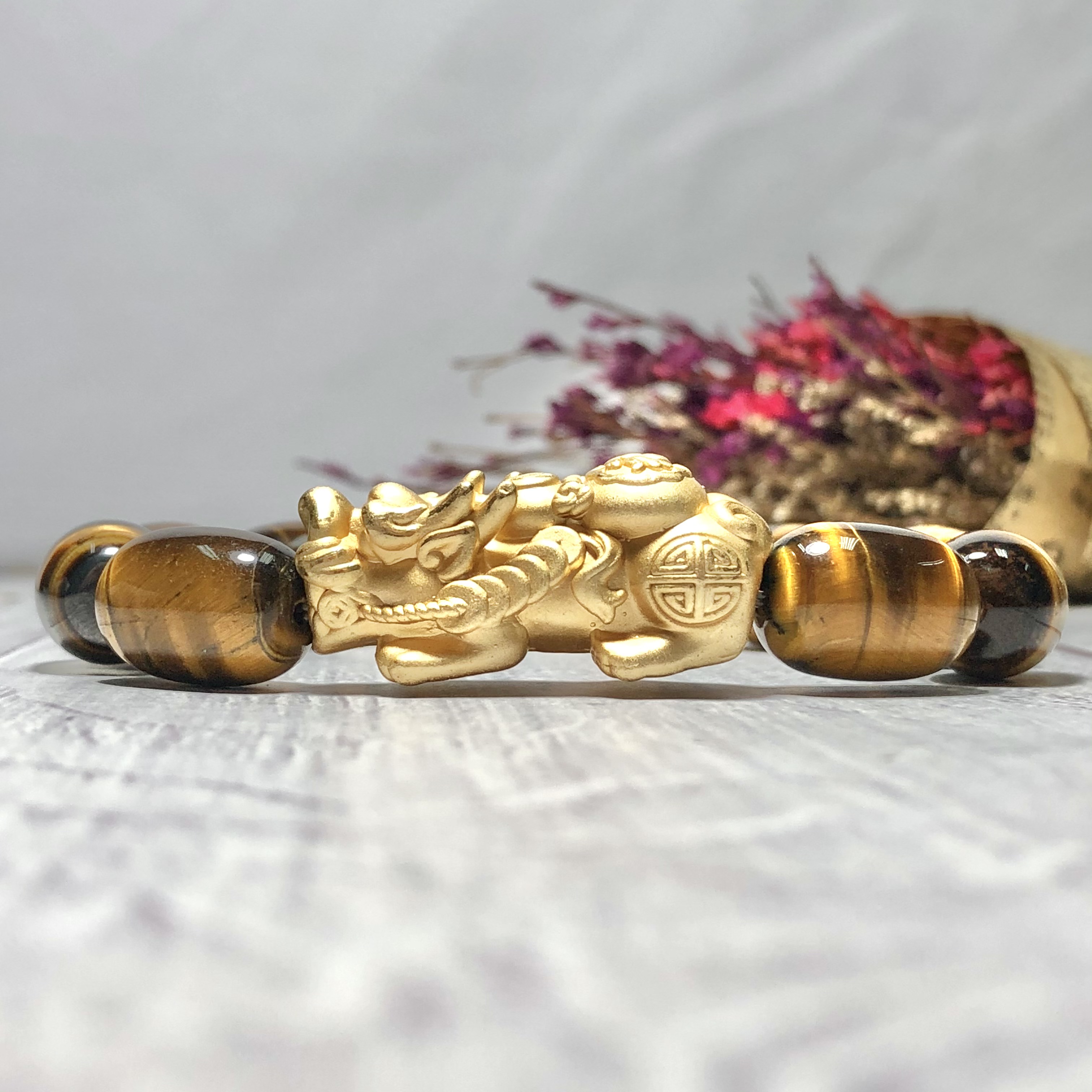 Vòng đá mắt hổ vàng nâu mix tỳ hưu và 1 hạt kim tiền bạc I Ý nghĩa của đá mắt hổ trong phong thủy