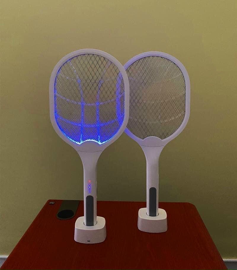 - Đèn ngủ: với ánh sáng dịu nhẹ từ chiếc vợt bắt muỗi tự động này thì thay thế được luôn cho đèn ngủ ạ Nguyên lý của vợt muỗi thông minh : Muỗi rất bị thu hút bởi ánh sáng, do vậy trong phòng tối mà chỉ có vợt bắt muỗi phát ra ánh sáng nên muỗi sẽ bị thu hút bay hết về chỗ có ánh sáng. Do vậy khi bay vào vùng ánh sáng sẽ bị điện của vợt muỗi giật chết. Ngoài ra nếu chúng ta mắc màn hoặc muốn tìm muỗi thì vẫn dùng như vợt bắt muỗi bình thường nhé! THÔNG SỐ KỸ THUẬT: Vật liệu: nhựa ABS và các chi tiết điện tử Kích thước: 54 x 22cm/21.26 x 8.66in (bao gồm cả đế sạc) Trọng lượng: 360g (không bao gồm đế sạc) Dung tích pin: 1200 mAh, sạc đầy từ 2-3h Công suất tiêu thụ điện: 2W Cổng sạc: USB Sạc đầu vào: DC5V-1A Nguồn ánh sáng: 360-400nm LED HƯỚNG DẪN SỬ DỤNG: Lần đầu tiên sử dụng, sạc đầy thiết bị trong khoảng 4-6 tiếng. CHẾ ĐỘ VỢT MUỖI: