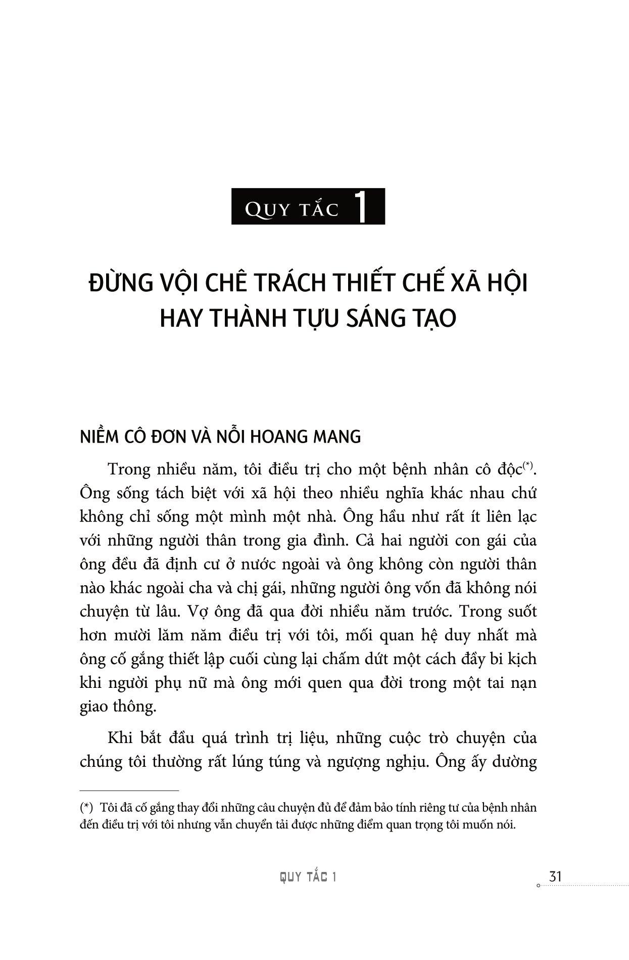 Với quyển sách này, bạn không cần đọc từ chương đầu đến chương cuối, chỉ cần lật giở một trang sách bất kì, bạn sẽ nhận được những kỹ năng đương đầu với rủi ro, hỗn độn . Xuyên suốt 12 quy luật là thông điệp có giá trị từ Kinh Thánh, từ những biến cố, các câu chuyện thực tế trong chính cuộc sống của tác giả.12 quy tắc của giáo sư Peterson huyến khích người đọc tiếp cận với lĩnh vực xa hơn. Đây là điều cần thiết để thích nghi với một thế giới luôn thay đổi. Những quy tắc này sẽ là kim chỉ nam giúp bạn tìm thấy mấu chốt cho câu hỏi: Ta phải làm gì khi rơi vào nghịch cảnh? 12 quy tắc của giáo sư Peterson huyến khích người đọc tiếp cận với lĩnh vực xa hơn. Đây là điều cần thiết để thích nghi với một thế giới luôn thay đổi.
