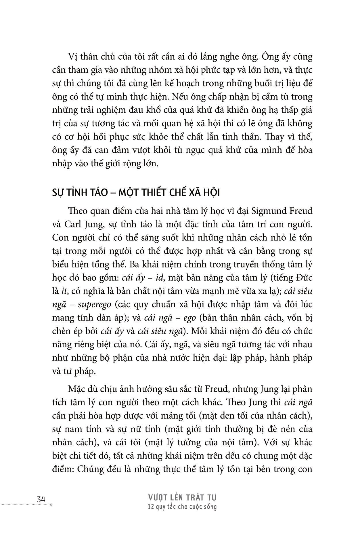 Vậy là cuốn sách tiếp – Vượt Lên Trật Tự ra đời như một liều thuốc giải giúp bạn giải quyết những biến động, rối loạn và bất định. Vẫn là 12 quy luật, nhưng khác với “12 rules for life”, 12 bộ quy tắc củhư một “cứu cánh” giúp bạn nhận ra rằng trật tự thực ra rất mong manh, rằng “Con người vốn yếu đuối. Vì thế, cuộc sống luôn khó khăn và đau khổ thì đầy rẫy.” Và “để xoa dịu những khổ đau đó (như đảm bảo mọi người đều có đủ thức ăn, nước sạch và một nơi ở đàng hoàng, sạch sẽ), chúng ta cần đến sự mạnh dạn sáng tạo, nỗ lực và năng lực.”