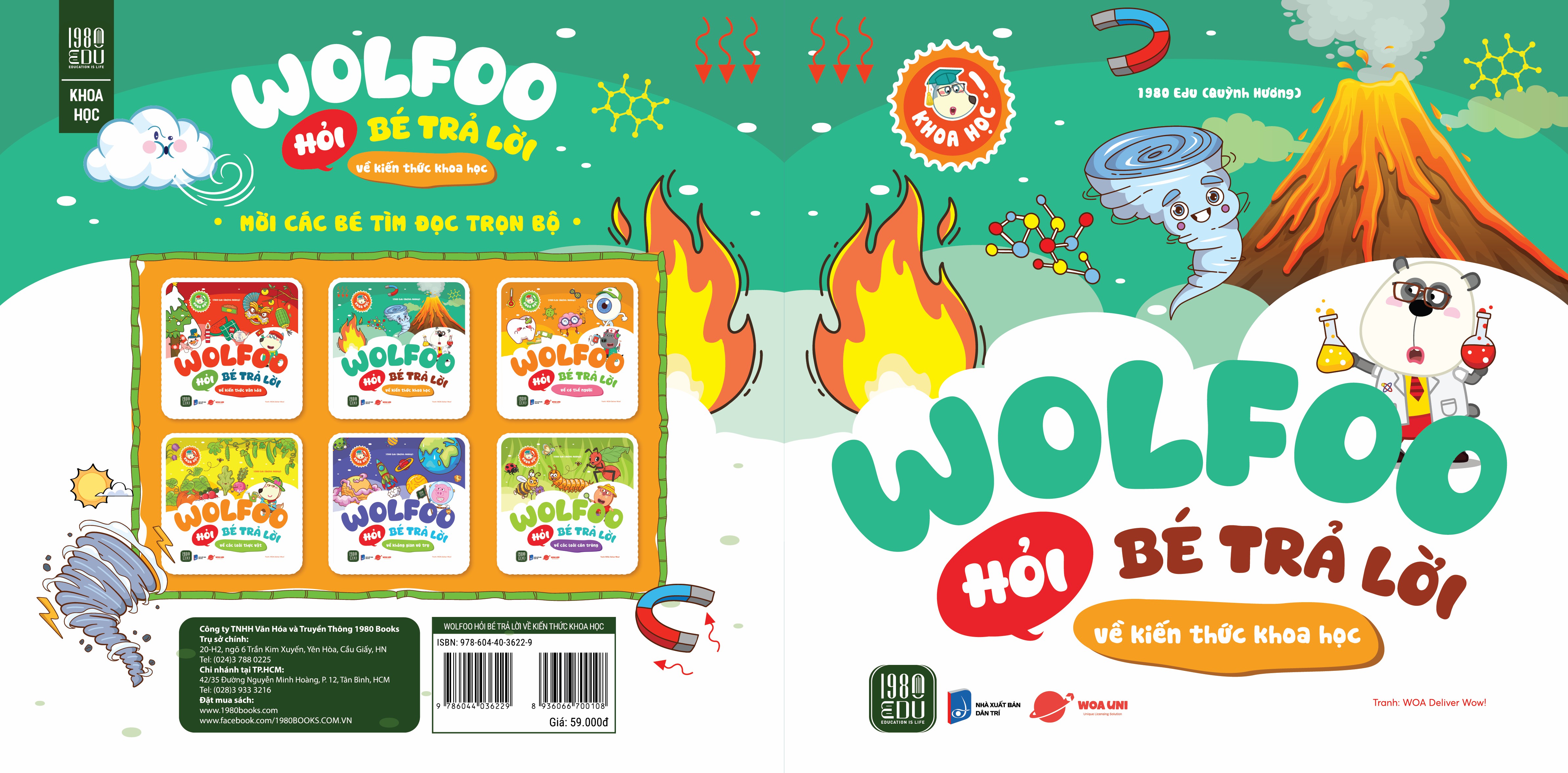 Cuốn sách “Wolfoo hỏi bé trả lời về kiến thức khoa học” nằm trong bộ sách WOLFOO HỎI BÉ TRẢ LỜI gồm 6 cuốn được chia thành nhiều chủ đề khác nhau giúp các em thỏa sức khám phá. Với hình ảnh minh họa sắc nét, sinh động và các kiến thức được giải thích chi tiết, ngắn gọn giúp các bạn nhỏ khám phá để hiểu hơn về các thói quen, tập tính sống của các loài côn trùng, đến những kiến thức bao la về vụ trụ rộng lớn.