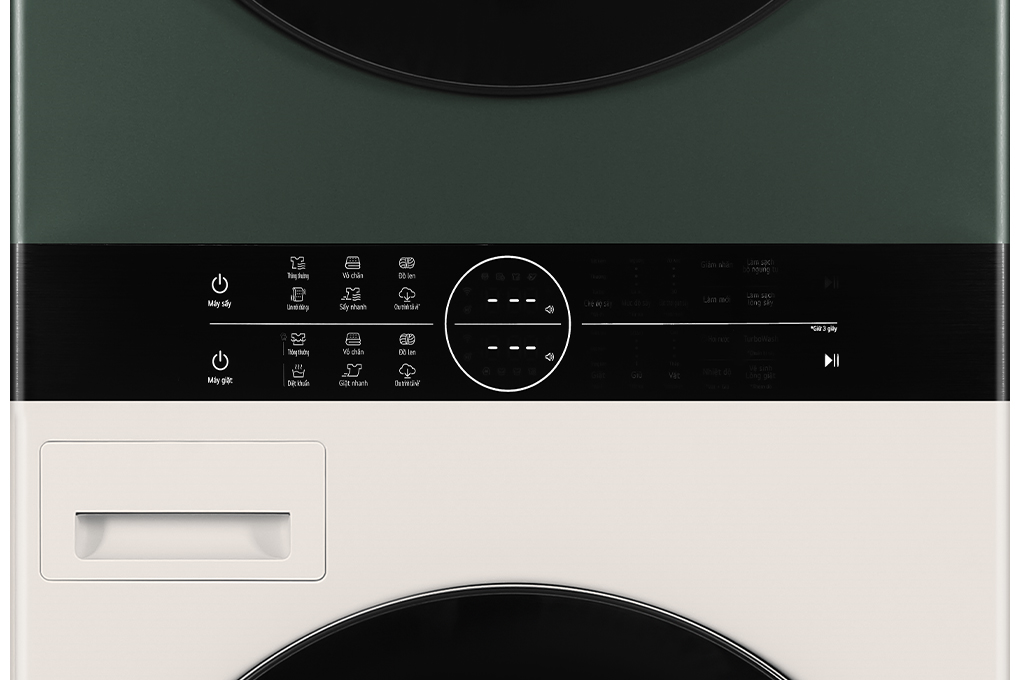 - Bảng điều khiển sử dụng tiếng Việt và được thiết kế dạng cảm ứng, có màn hình Led hiển thị, giúp bạn dễ dàng quan sát và thao tác. Hơn nữa, bảng điều khiển được bố trí nằm ở vị trí chính giữa, phù hợp phần lớn của chiều cao người Việt hiện nay. Nó còn được thiết kế sử dụng chung cho cả máy giặt và máy sấy, giúp bạn sử dụng thuận tiện.