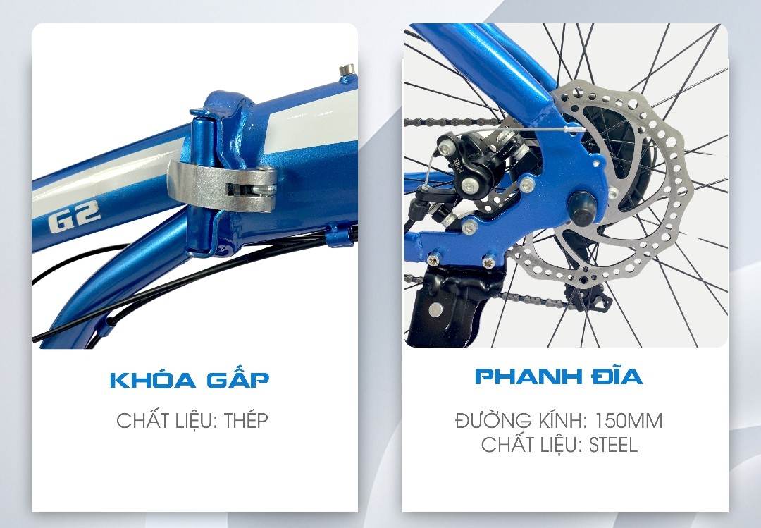 Mua tại TiktokKích thước bánh xe: 26 INCH Xe được làm bằng hợp kim thép cao cấp làm cho xe rất nhẹ kết hợp với lớp sơn phủ tĩnh điện giúp xe luôn bền màu, hạn chế trình trạng gỉ sét, ăn mòn. Với thao tác gập gọn đơn giản, người dùng có thể cất xe vào cốp oto, hay vào nhà mà không chiếm quá nhiều diện tích. Xe đạp gấp sử dụng vành xe có đường kính 26 inch làm từ hợp kim nhôm 2 lớp, đi cùng với cặp lốp nhiều rãnh giúp bám đường tốt hơn. Yên xe được làm rất chi tiết với một lớp da rất dày dặn ngồi êm, độ đàn hồi cao. Cọc yên hợp kim nhôm sáng bóng có thể điều chỉnh chiều cao một cách dễ dàng.