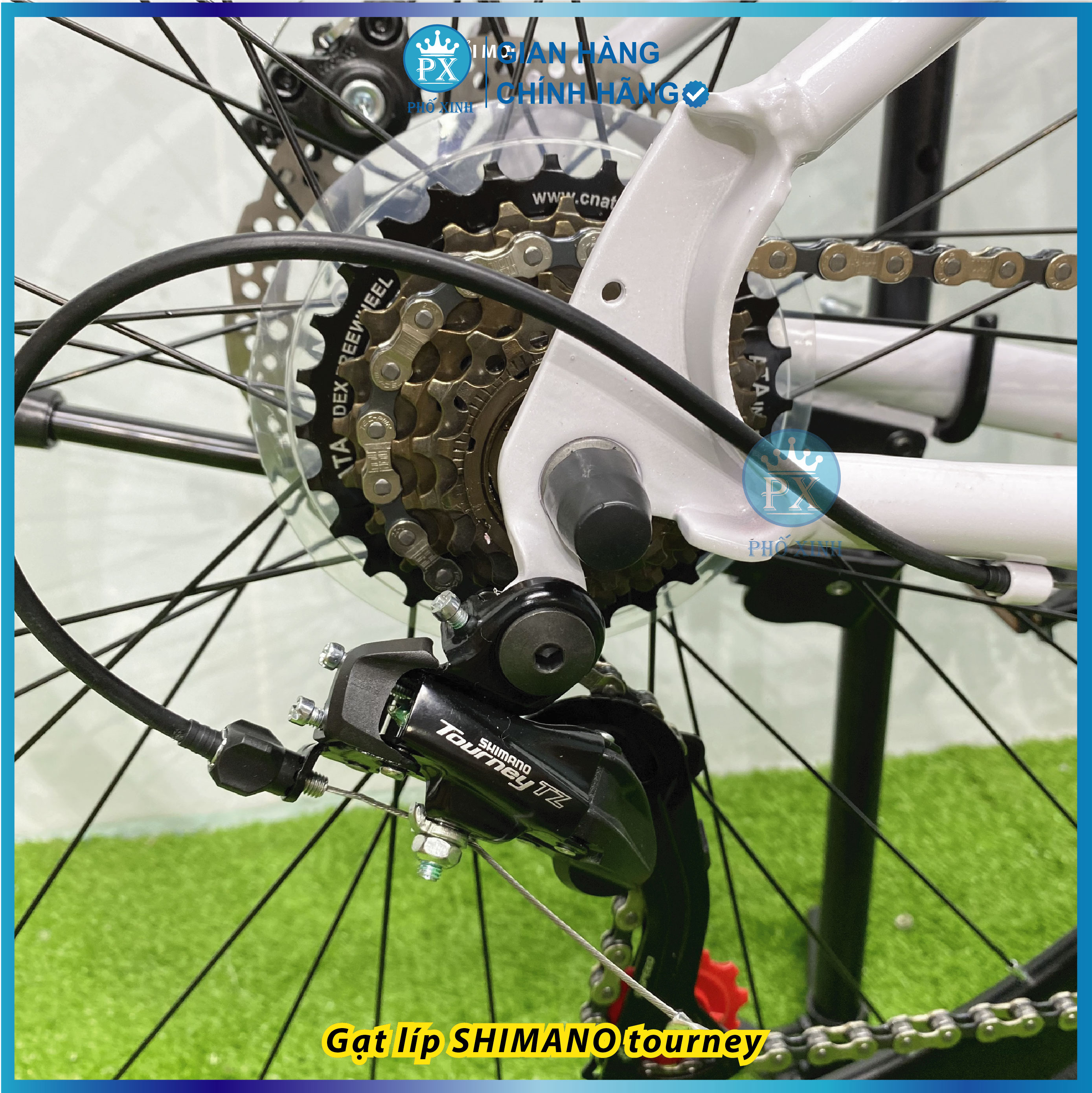 Ghi đông CATANI được uốn công nhẹ, tạo tư tế lái thoải mái nhất. Các chi tiết chữ nổi sử dụng công nghệ laser.Bộ truyền động S H I M A NO tourney lên đến 21 tốc độ, gồm 3 dĩa 7 líp. Cho bạn dễ dàng tăng tốc, trợ thủ đắc lực đồng hành cùng bạn. Đùi dĩa CATANI chất liệu thép hợp kim chắc chắn.Hệ thống thắng đĩa cơ, đảm bảo an toàn trên tất cả mọi nẻo đường.