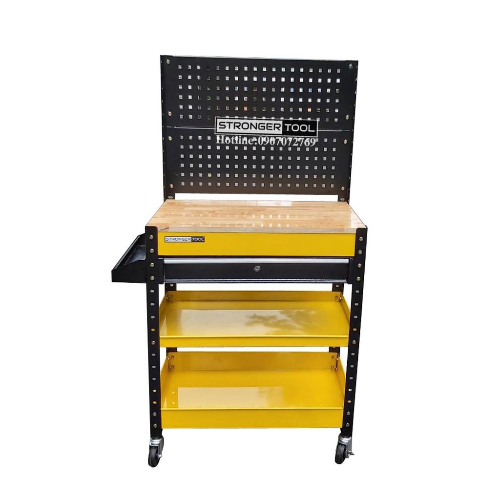✨XE ĐẨY DỤNG CỤ 1 NGĂN KÉO CÓ MẶT BÀN GỖ VÀ TẤM TREO STRONGER TOOL