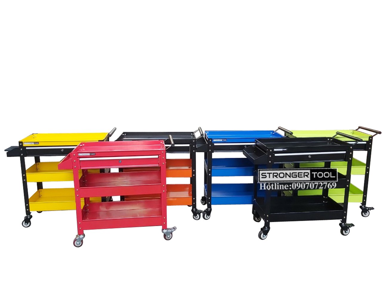 Kích thước: dài 720mm * rộng 390mm * cao 770mm Số khay: 3 khay + 1 ngăn kéo Chất liệu: thép tấm, sơn tĩnh điện Màu sắc: xanh biển, xanh chuối, đen, vàng, đỏ Khối